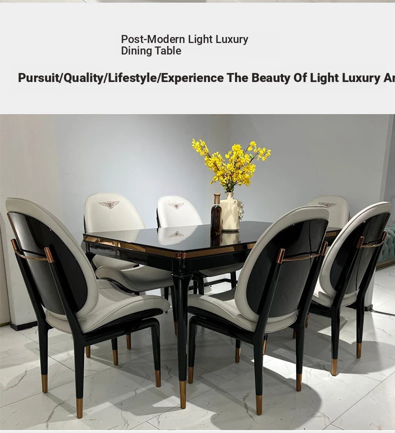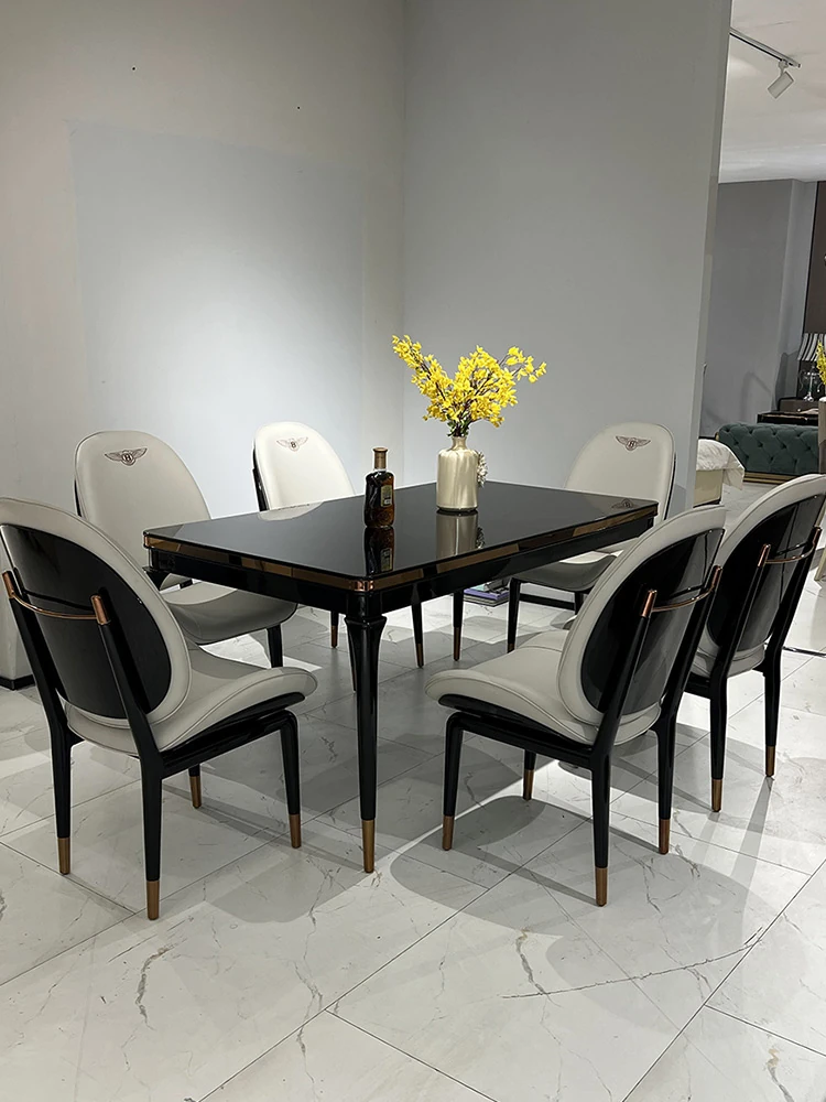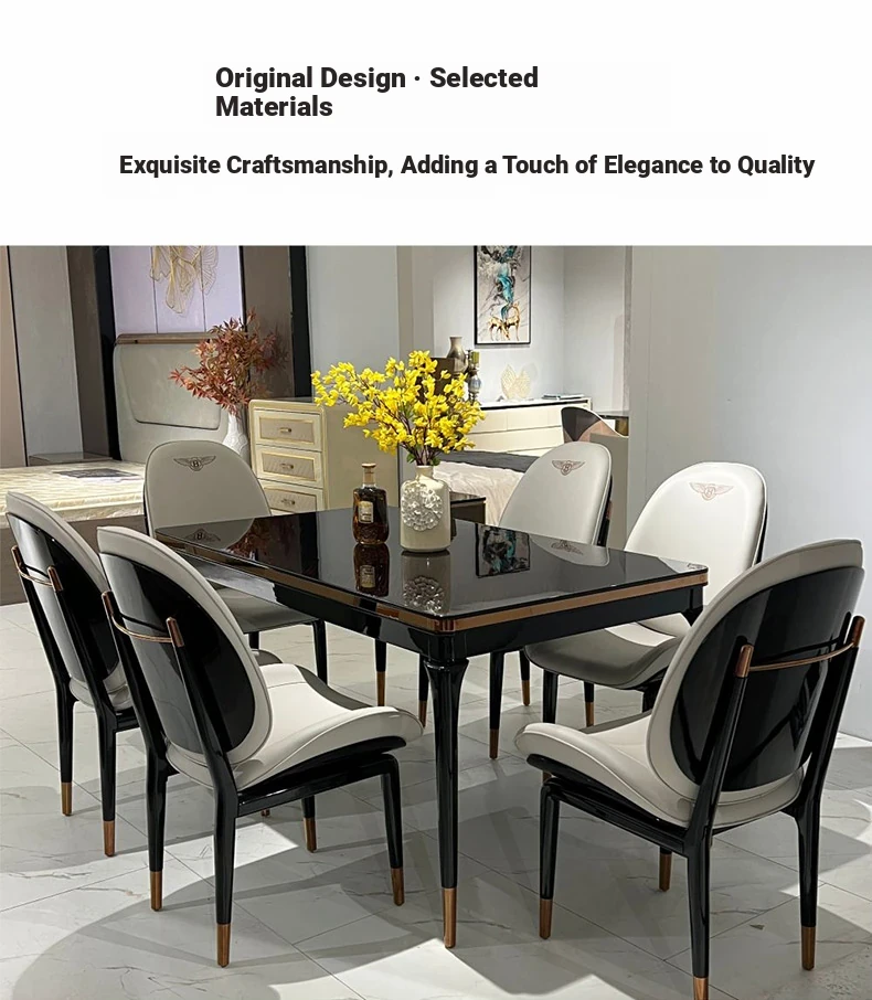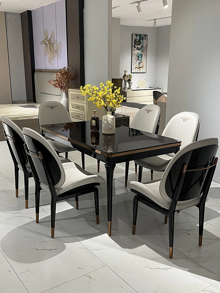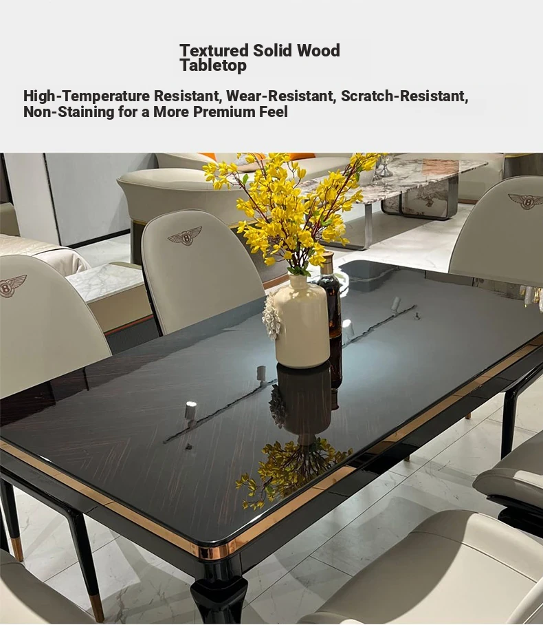 Elegant Italian Solid Wood Dining Table Set - Luxury High-End Restaurant Bentley Style Round Table with Chairs for Villas and Upscale Dining Experiences