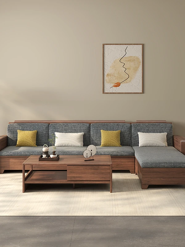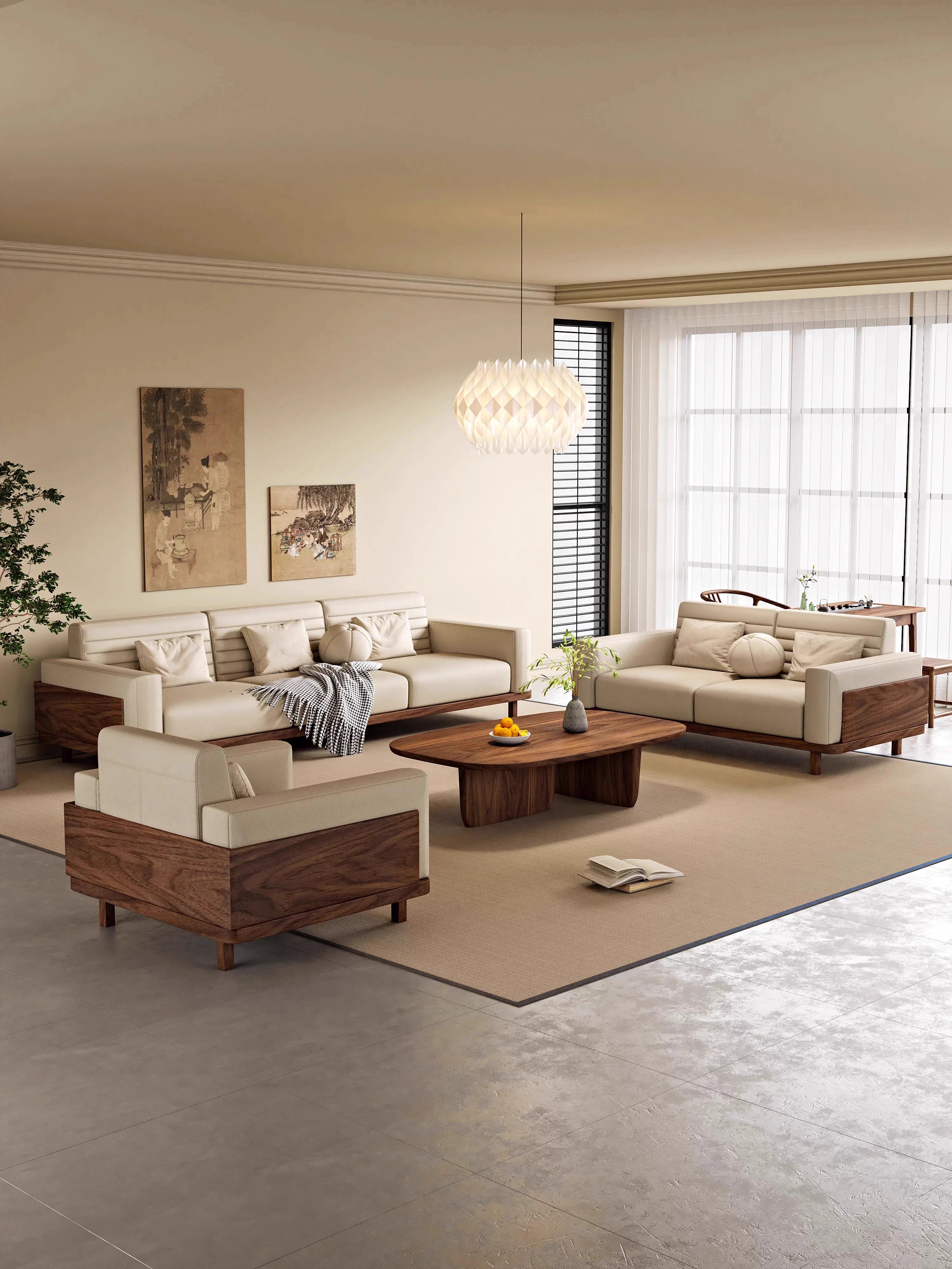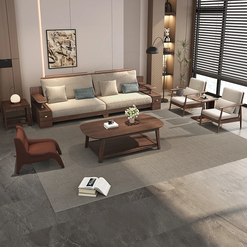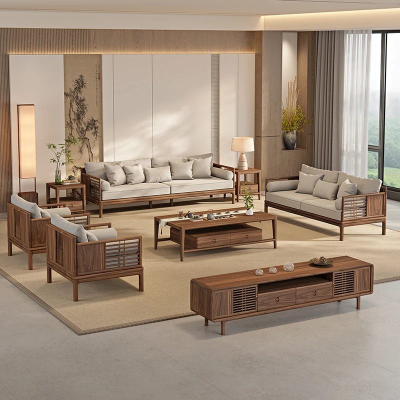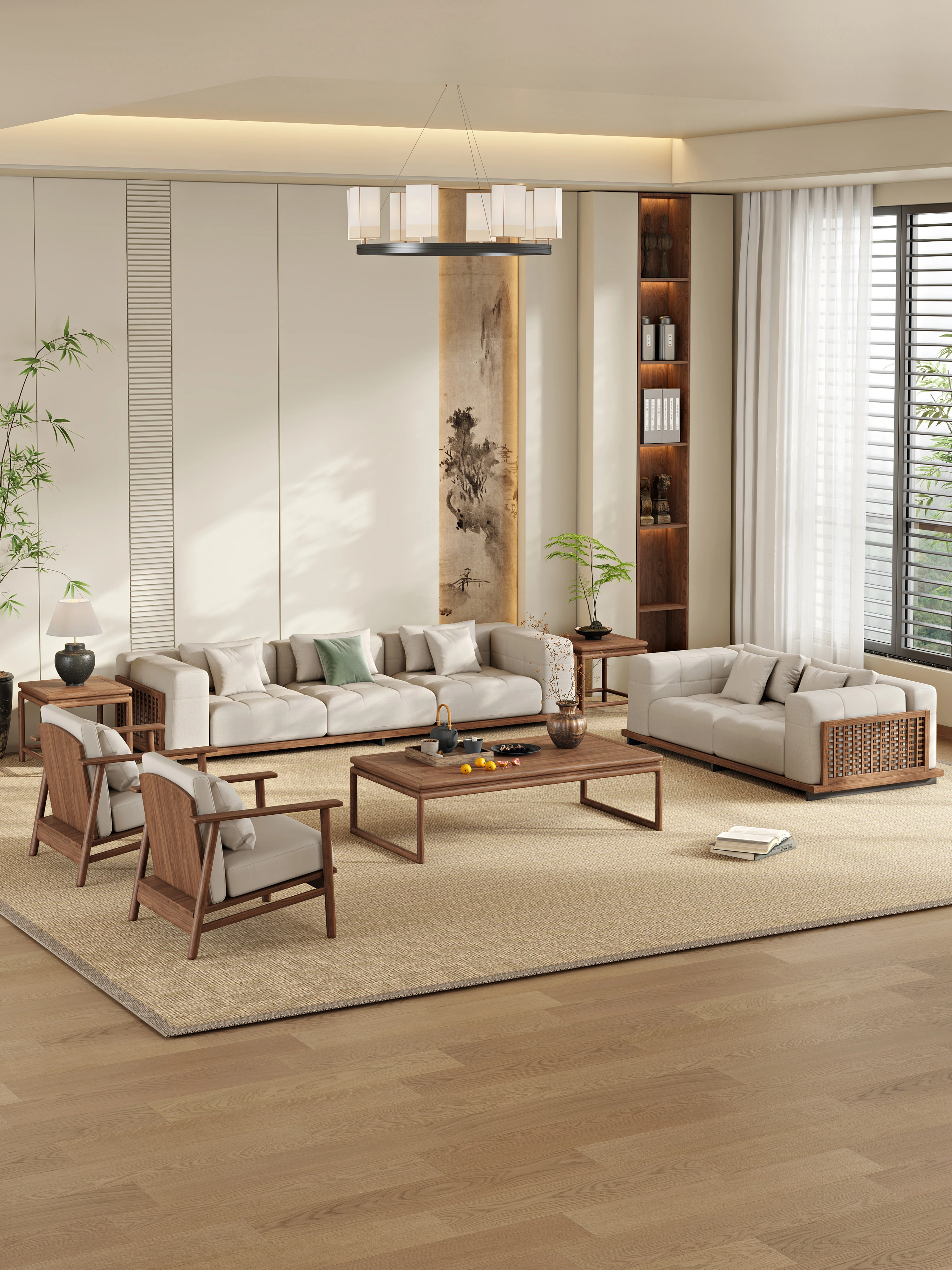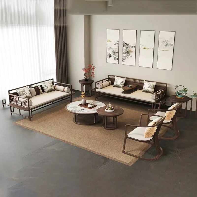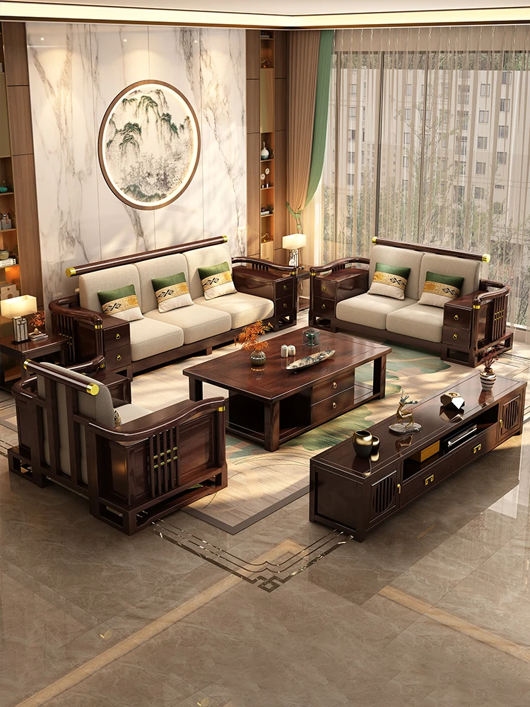 Modern Minimalist Zen Style Solid Black Walnut Wood Sofa Set for Spacious Villas - New Chinese Design Living Room Furniture