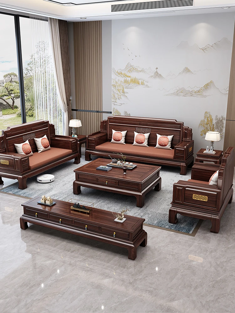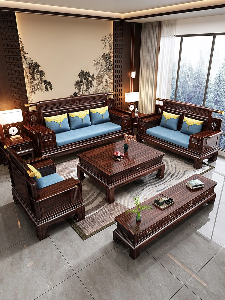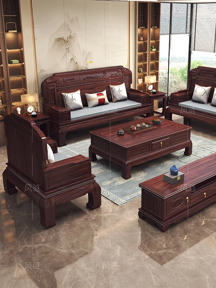 Elegant New Chinese Style Blackwood Sofa Set - Premium Solid Wood Living Room Furniture for Year-Round Comfort, Perfect for Villas and High-End Interiors.
