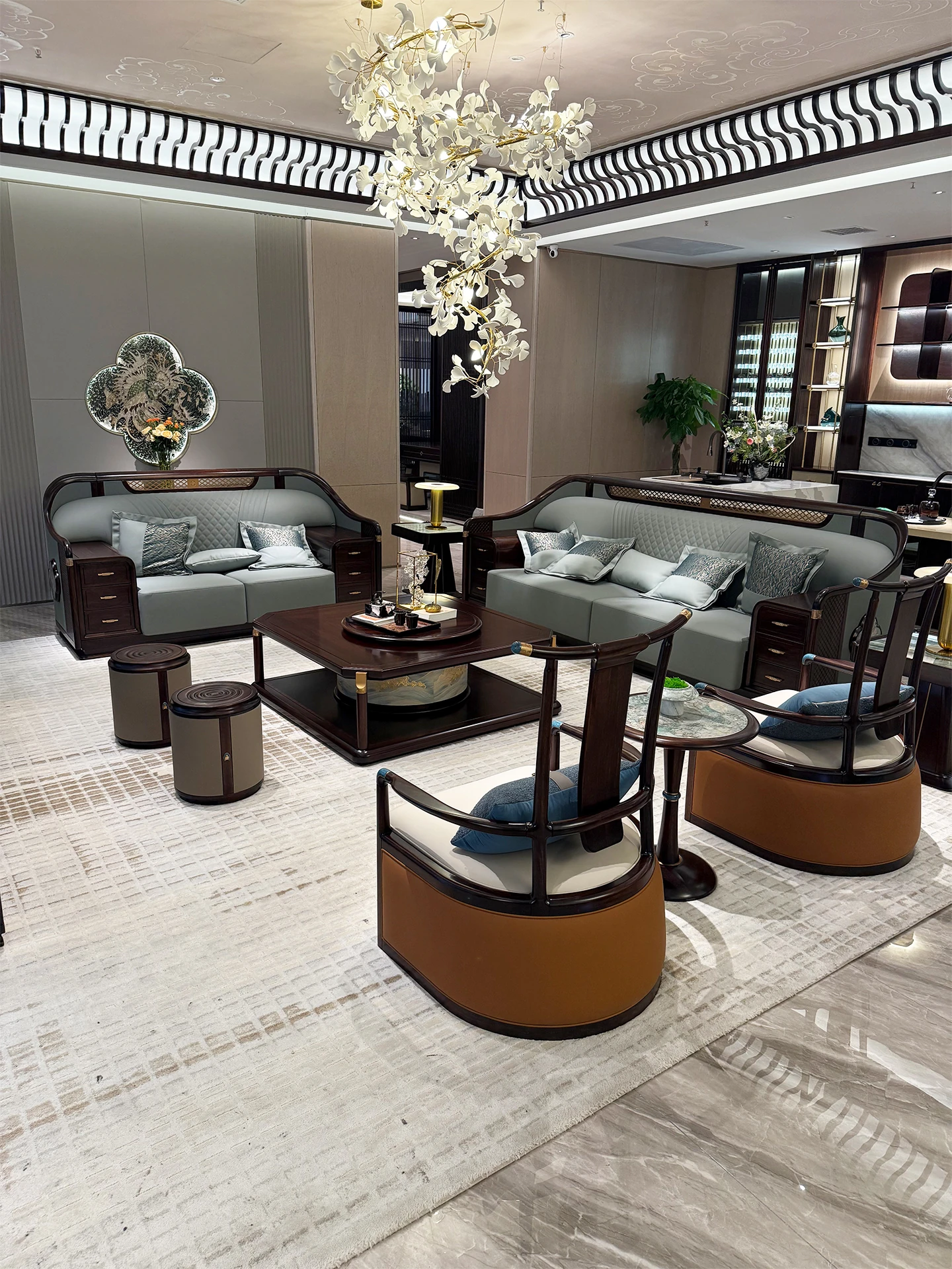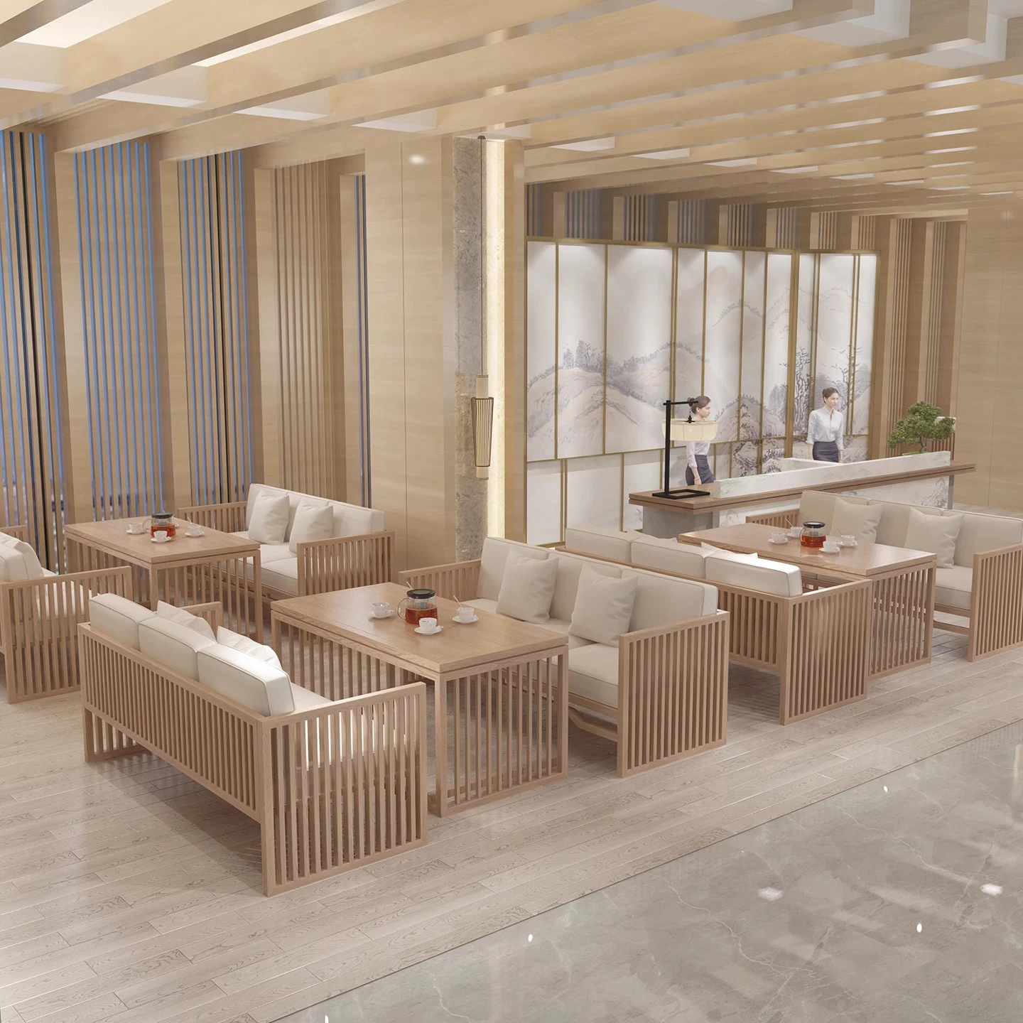 Modern Minimalist New Chinese Solid Wood Sofa Set for Hotels, Guesthouses, Tea Houses, and Reception Areas - Perfect for Lounges and Private Booths
