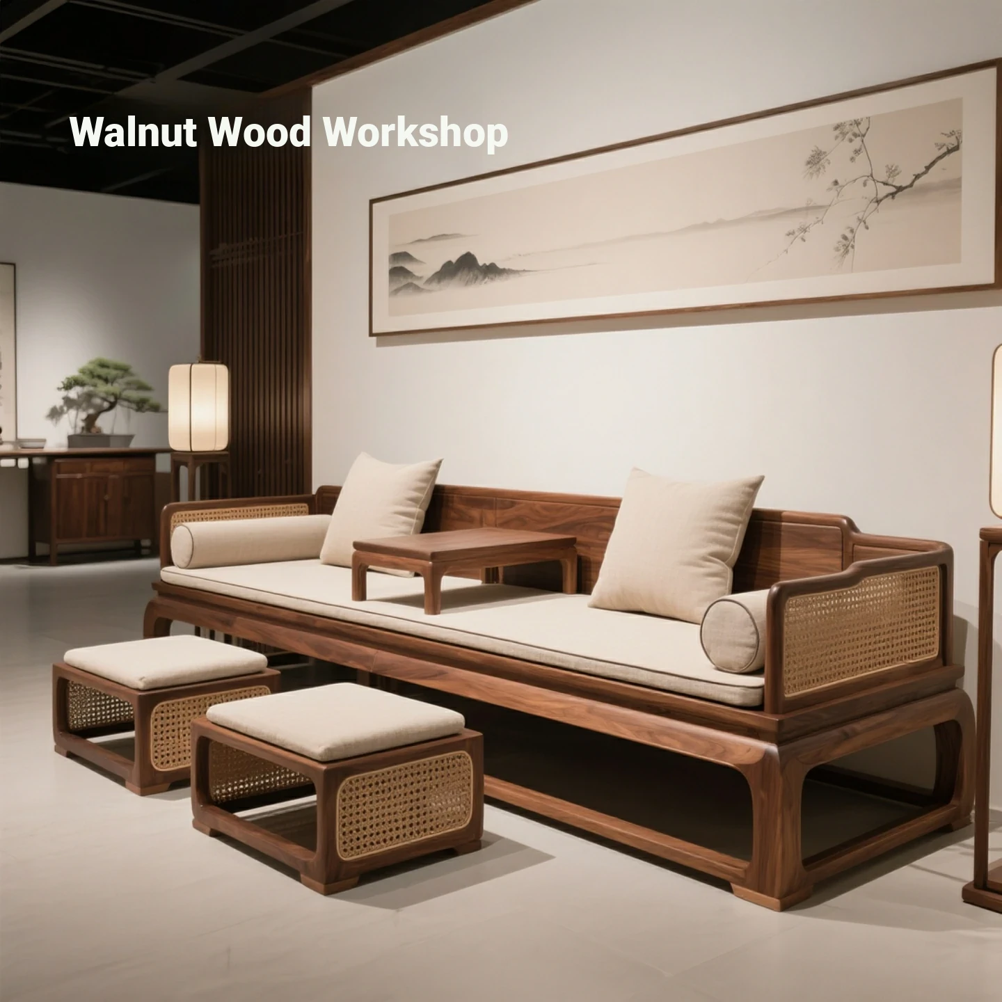 New Chinese Style North American Black Walnut Luohan Bed - Aesthetic Song Dynasty Three-Person Sofa - Zen-Inspired Minimalist Modern Furniture