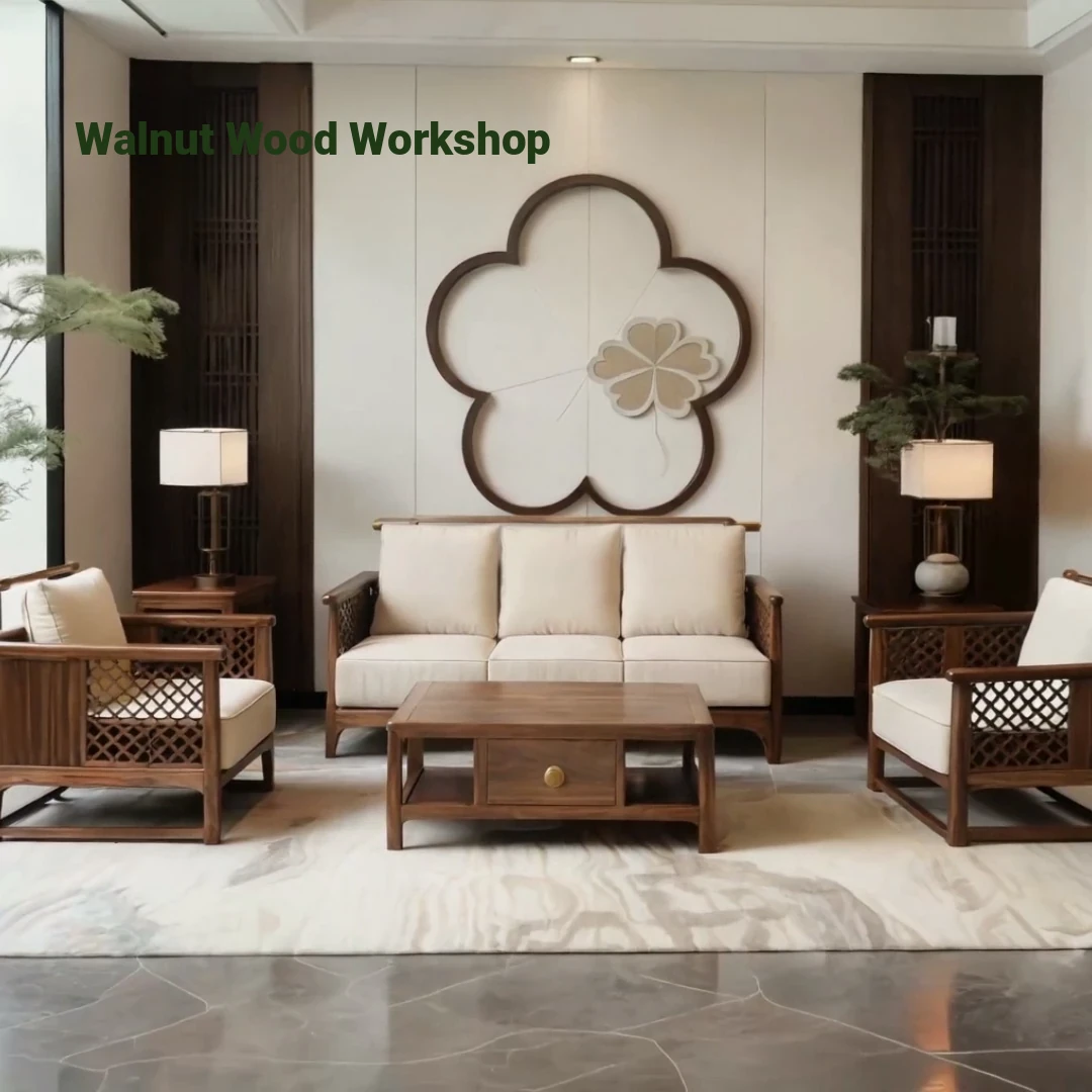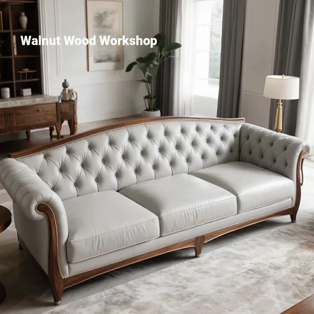 2025 New Luxury Solid Walnut Sofa - Elegant Natural Wood Design for Living Room, Comfortable Soft Backrest, Perfect for Home Decor