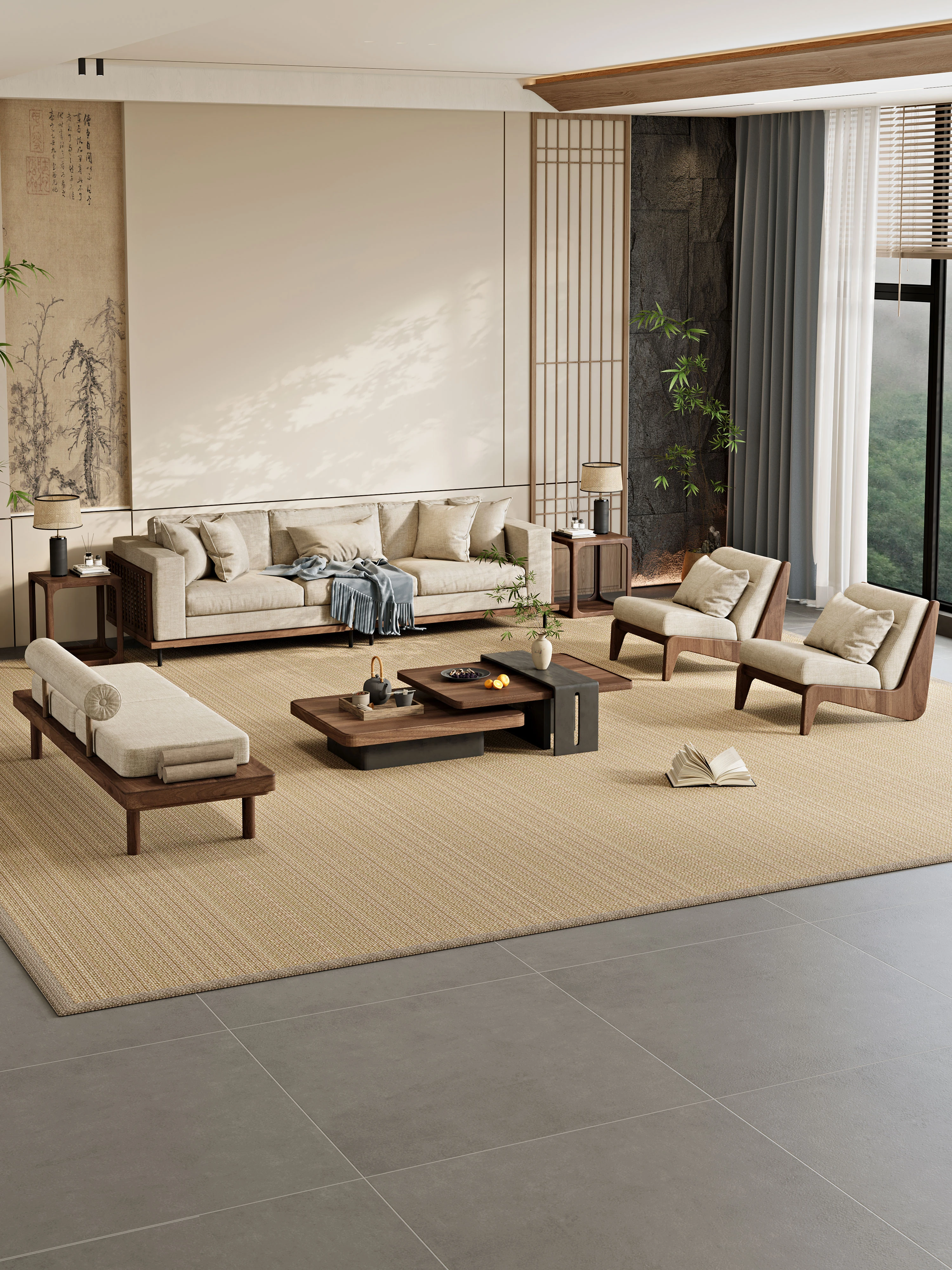 Modern Minimalist Solid Wood Sofa Set - New Chinese Style for 2025, Zen-Inspired Aesthetics by Song's Family, Perfect for Contemporary Living Rooms and Self-Built Homes.