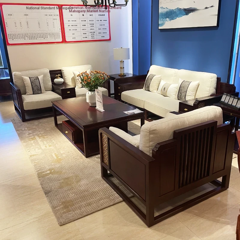 Indonesian Rosewood Solid Wood Sofa Set - New Chinese Style for Villas, Perfect for Winter and Summer Use, Spacious Design for Large Living Rooms - Elegant Red Wood Furniture