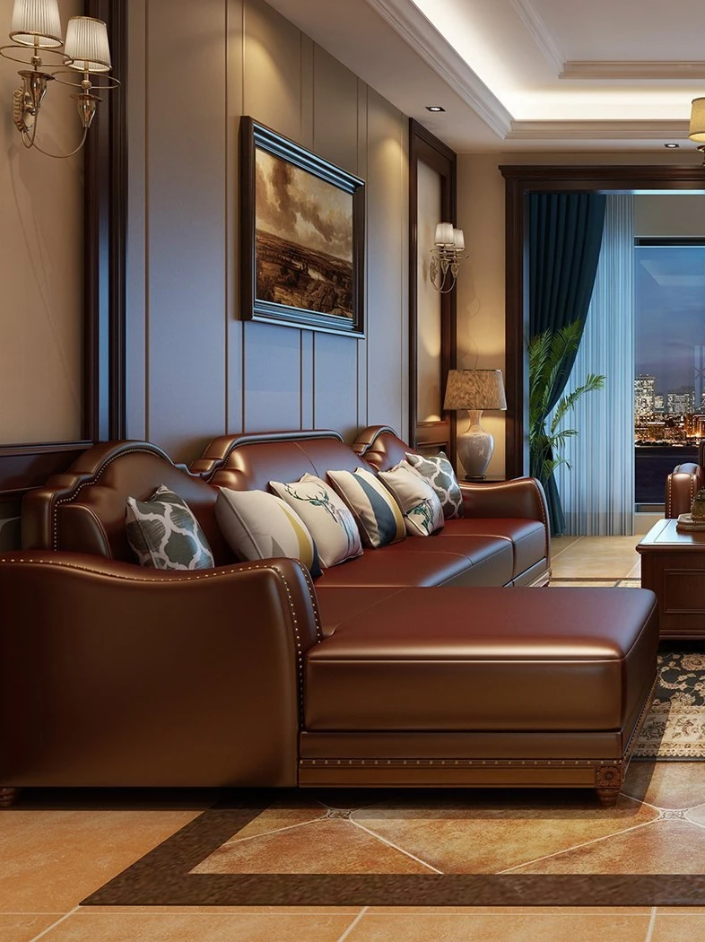 Premium American Leather Sofa - Luxurious Vintage Style for Living Rooms, Perfect for Any Size Space, Featuring Chic Solid Wood and Vintage Charm