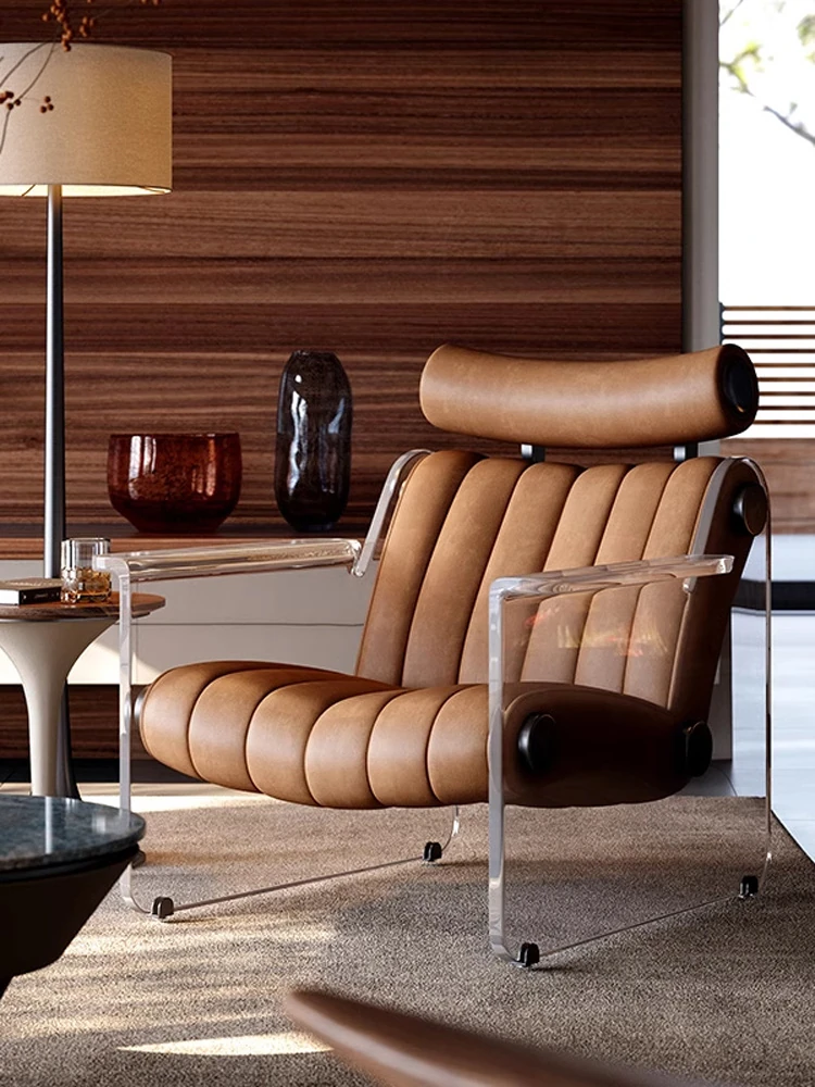 Italian Luxury Genuine Leather Sofa and Leisure Chair - Modern Minimalist Furniture for Villas and Spacious Homes, Perfect for Bentley Living Rooms