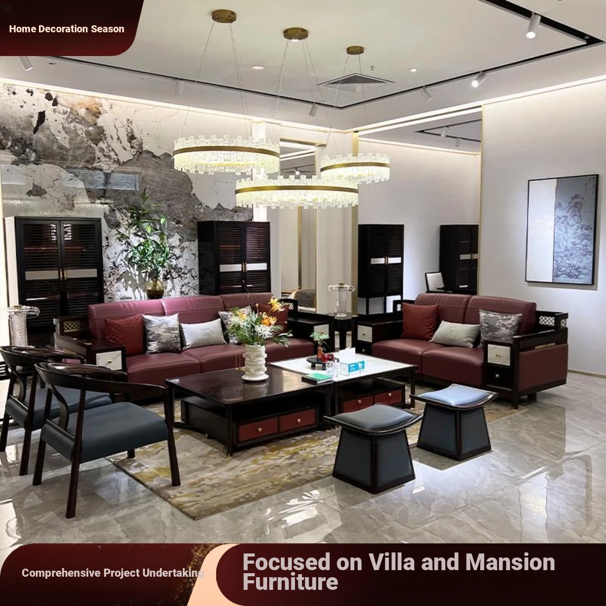 Modern Chinese Style Black Walnut Sofa Set - Luxurious, Minimalist Design for High-End Living Rooms and Villas - Complete Soft Decoration Solution