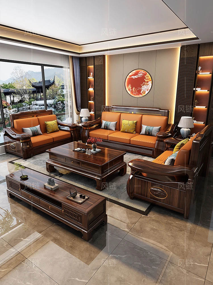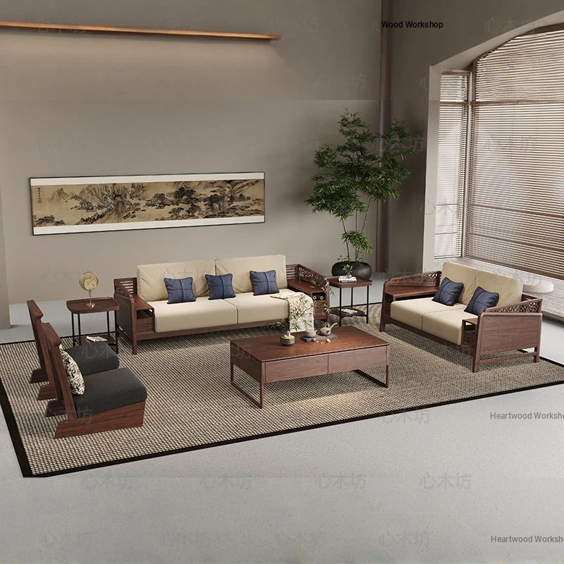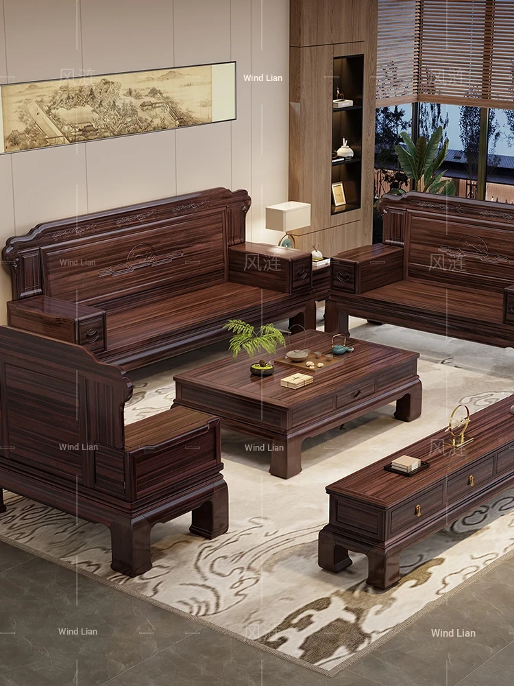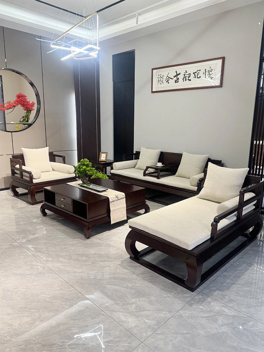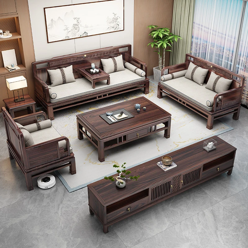 Modern Chinese Style Solid Blackwood Sofa Set - Versatile for Winter and Summer, Perfect for Small or Large Living Rooms, Classic Home Furniture with Zen Aesthetics