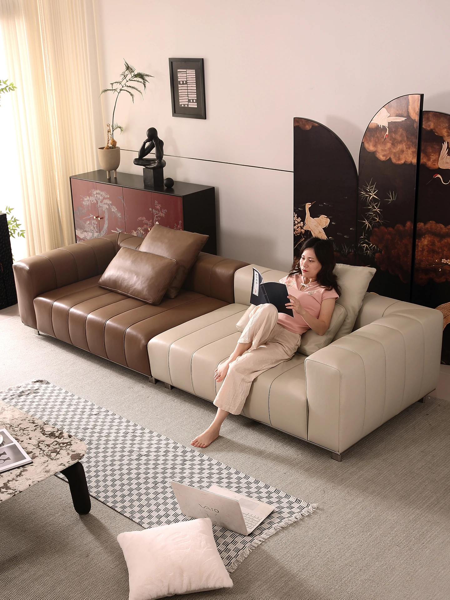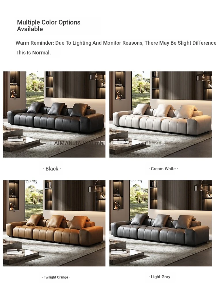 Luxurious Modern Leather Sofa Set for Spacious Living Rooms - High-End Villa Style, Minimalist Design, Comfortable 3-Seater Sofa with Sleek Lines and Premium Quality Leather. Perfect for Elevating Your Home Décor!