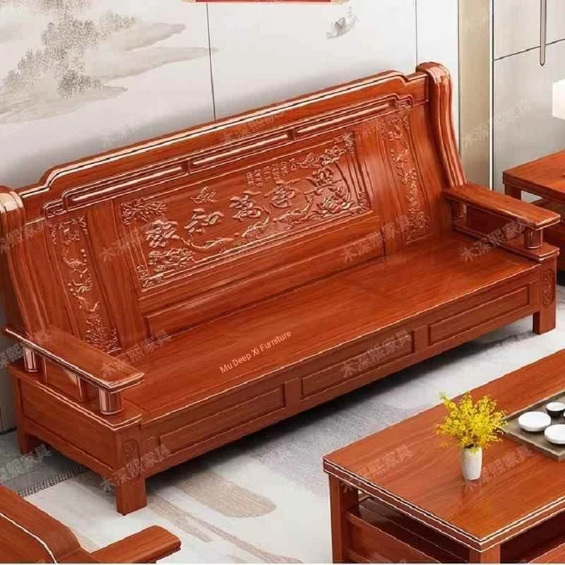 Luxury Zitan Wood Sofa - Handcrafted Solid Wood Living Room Furniture for Villas and Apartments, Dual-Season Use, Antique Style, High-End Red Wood Decor