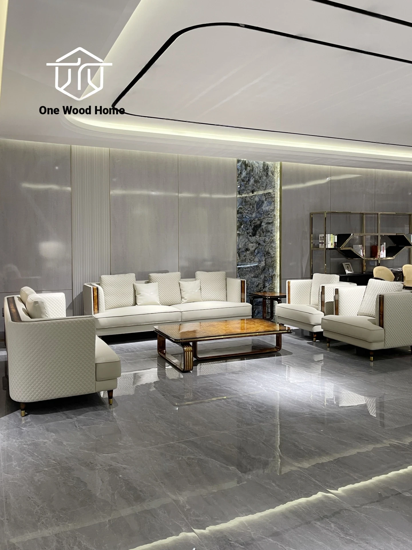Luxury New Chinese Style Genuine Leather Sofa Set with Solid Wood - Modern Light Luxury Complete Design for High-End Living Room (1+2+3)