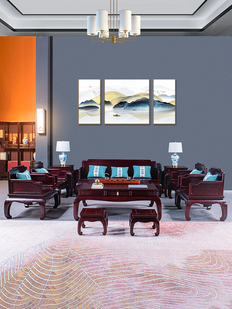 High-End New Chinese Style Solid Wood Sofa Made of Rosewood for Luxury Living Rooms - Classic Ming and Qing Dynasty Design, Ideal for Villas and Spacious Homes, Perfect for Year-Round Comfort.