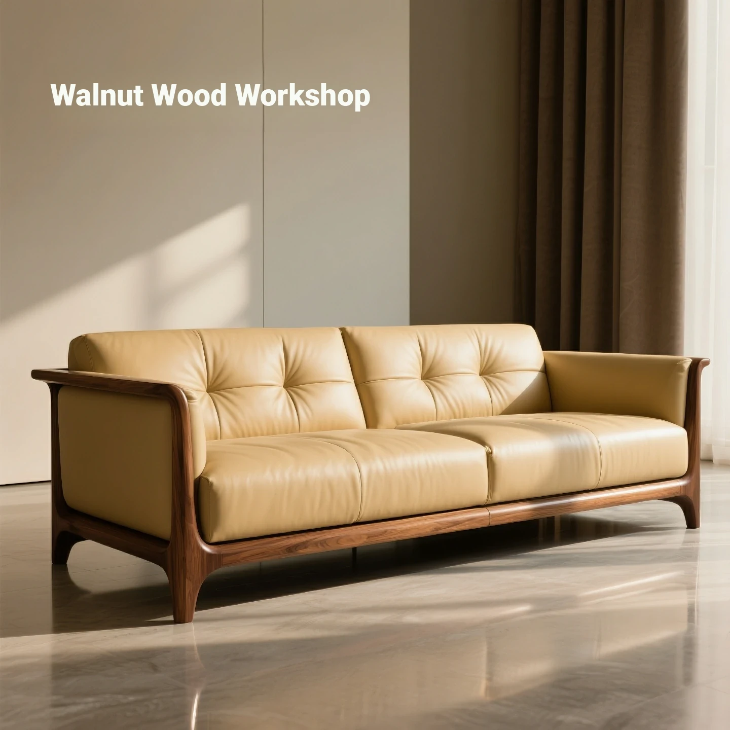 Heartwood Studio Black Walnut Solid Wood Sofa - New Chinese Style Modern Minimalist Living Room Sofa, 2025 Latest Design for Year-Round Comfort, Perfect for Winter and Summer Use.