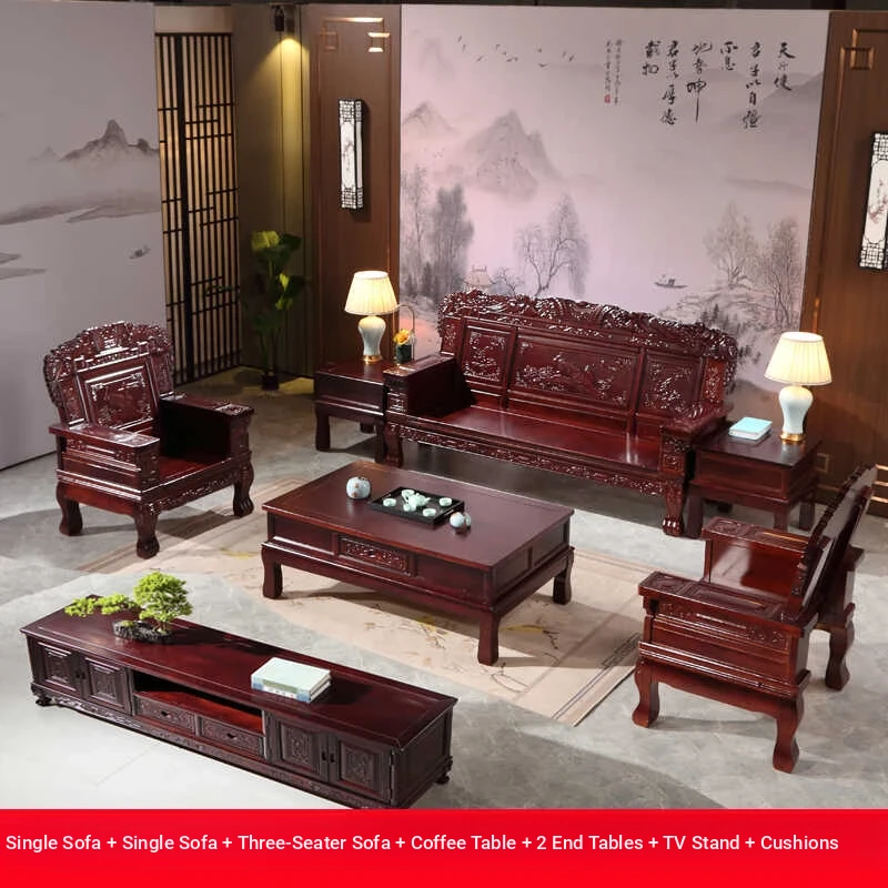 Premium Blackwood Solid Wood Sofa – Stylish New Chinese Design for Living Rooms and Villas, Suitable for All Seasons. High-End Antique-Style Red Wood Furniture for Both Large and Small Spaces.