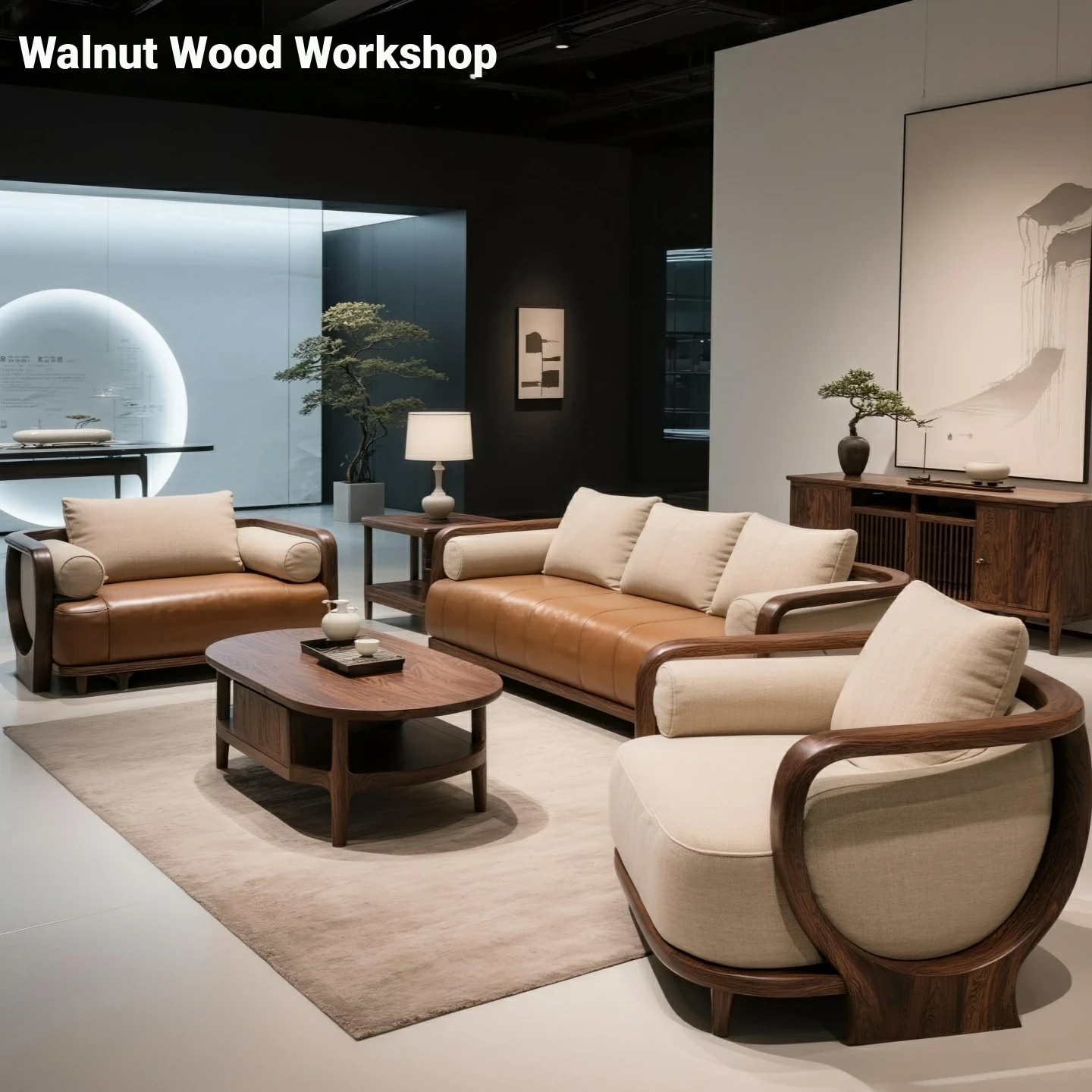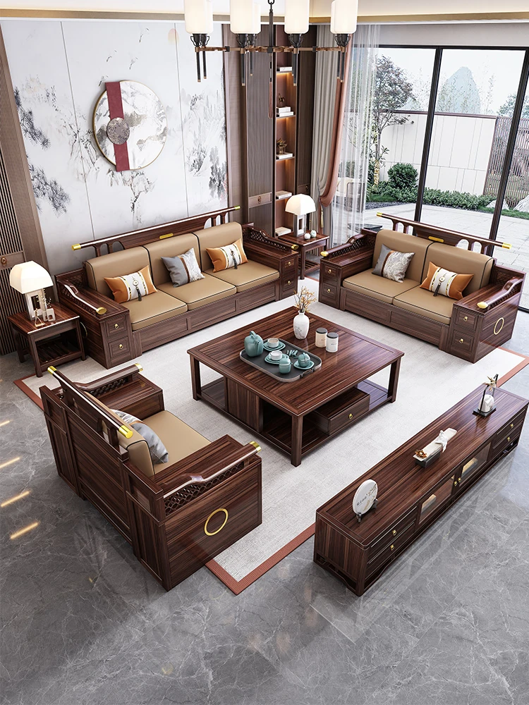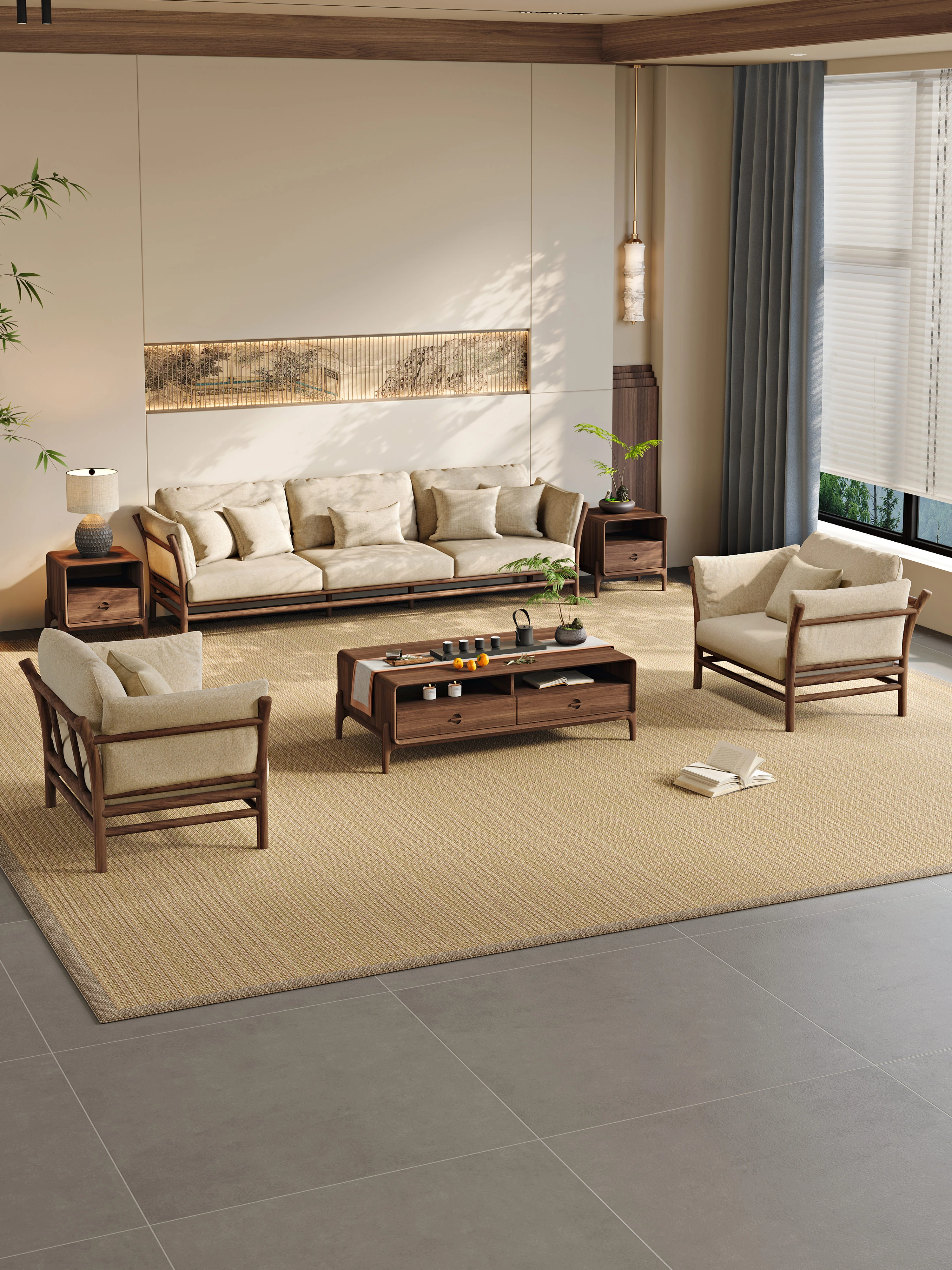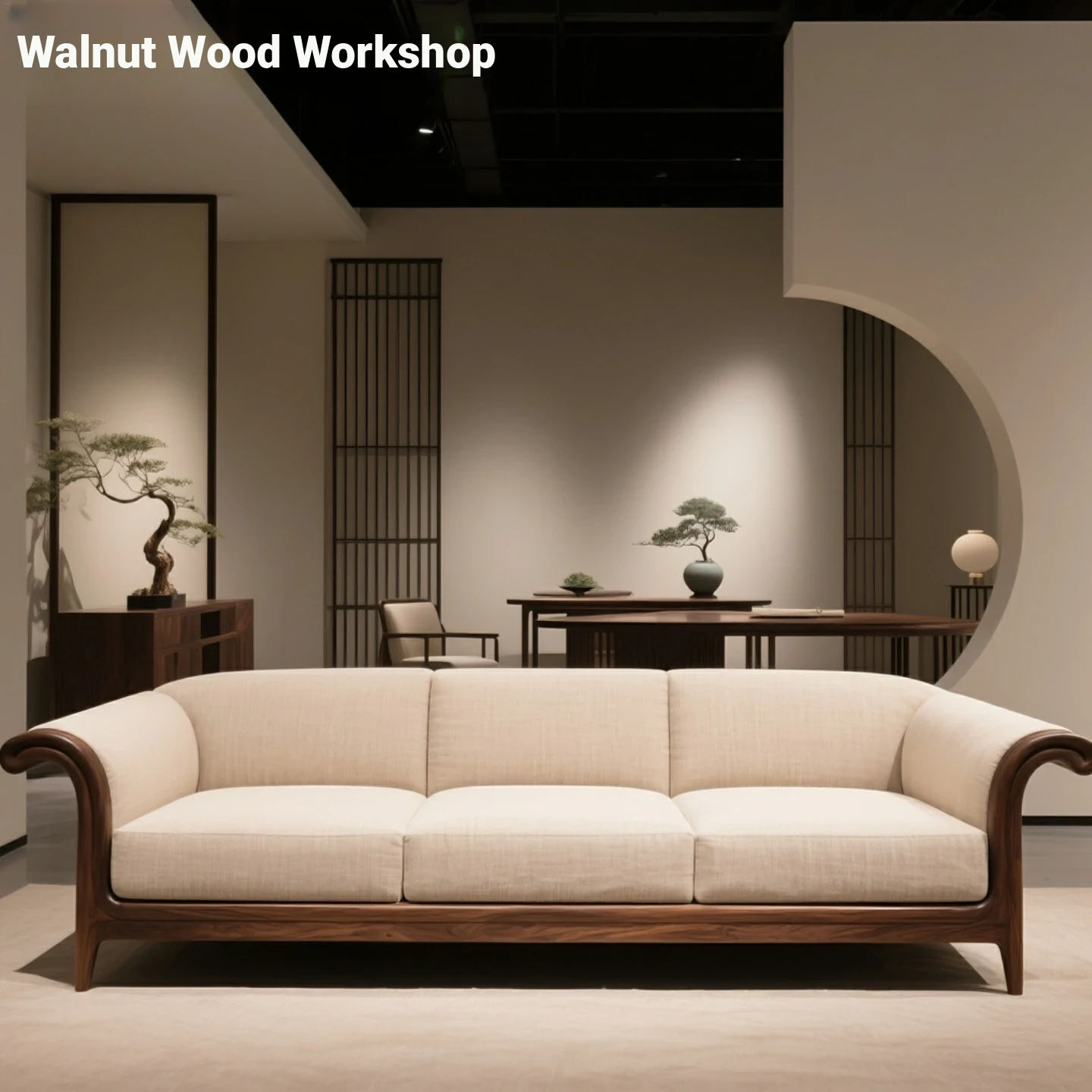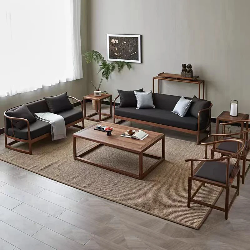 Modern Chinese Style North American Black Walnut Sofa Set - Minimalist Song Aesthetic Zen Solid Wood Furniture for Villa Living Room