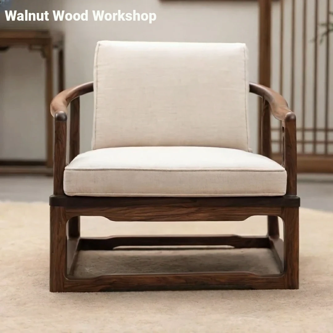 New Chinese Style Solid Wood Sofa - 2025 Modern Minimalist Single Chair for Small Living Rooms, Made of North American Walnut, Perfect for Your Cozy Space.