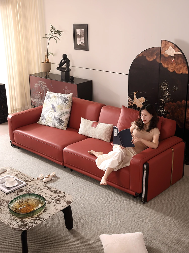 Genuine Leather Italian Luxury Sofa - Premium Top Grain Cowhide for Living Rooms, Perfect for Large Apartments and Villas, Spacious Four-Seater Design