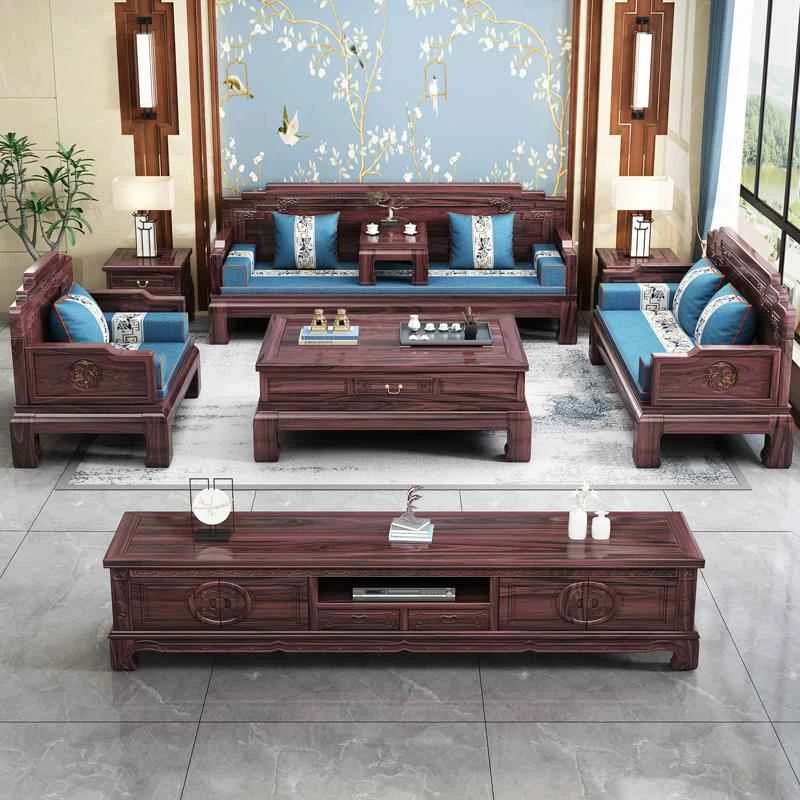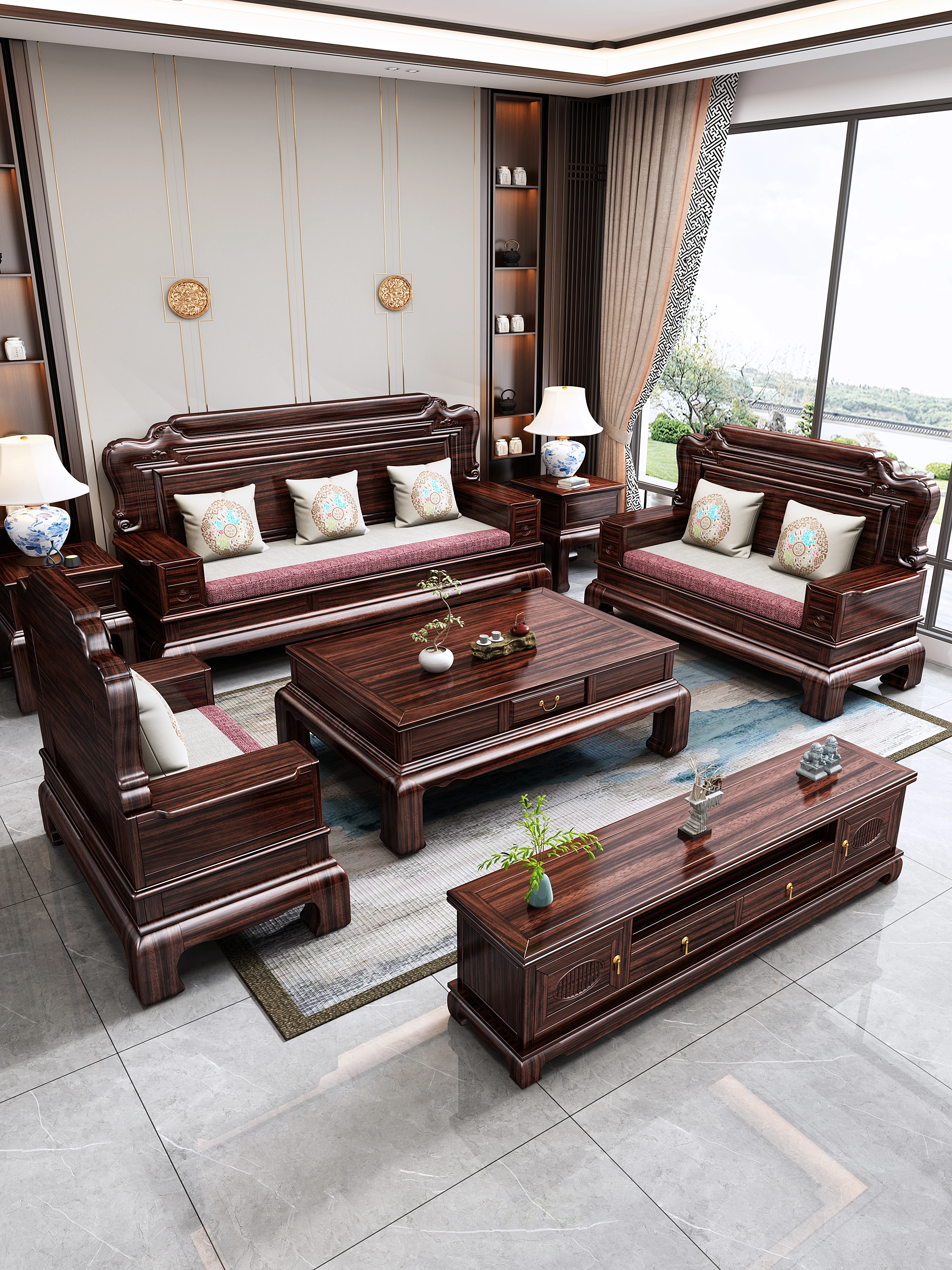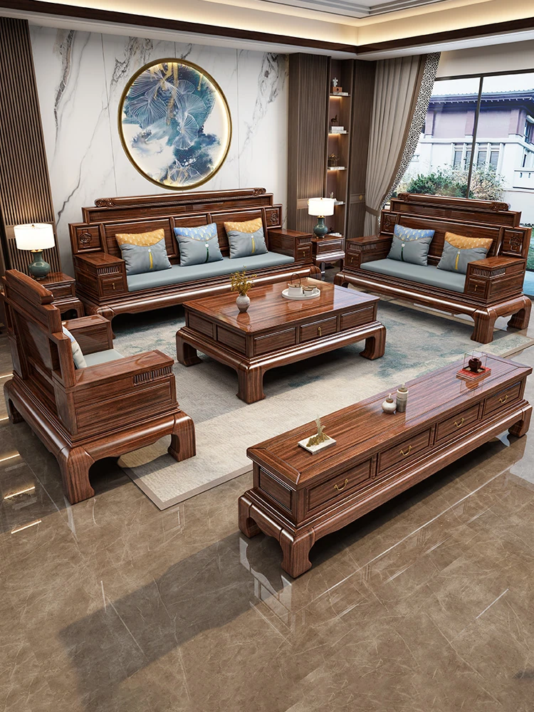 Modern Chinese Style Solid Wood Sofa Set - Australian Rosewood, Classic Dual-use Design for Small and Large Living Spaces, Complete Furniture Set for Your Cozy Home