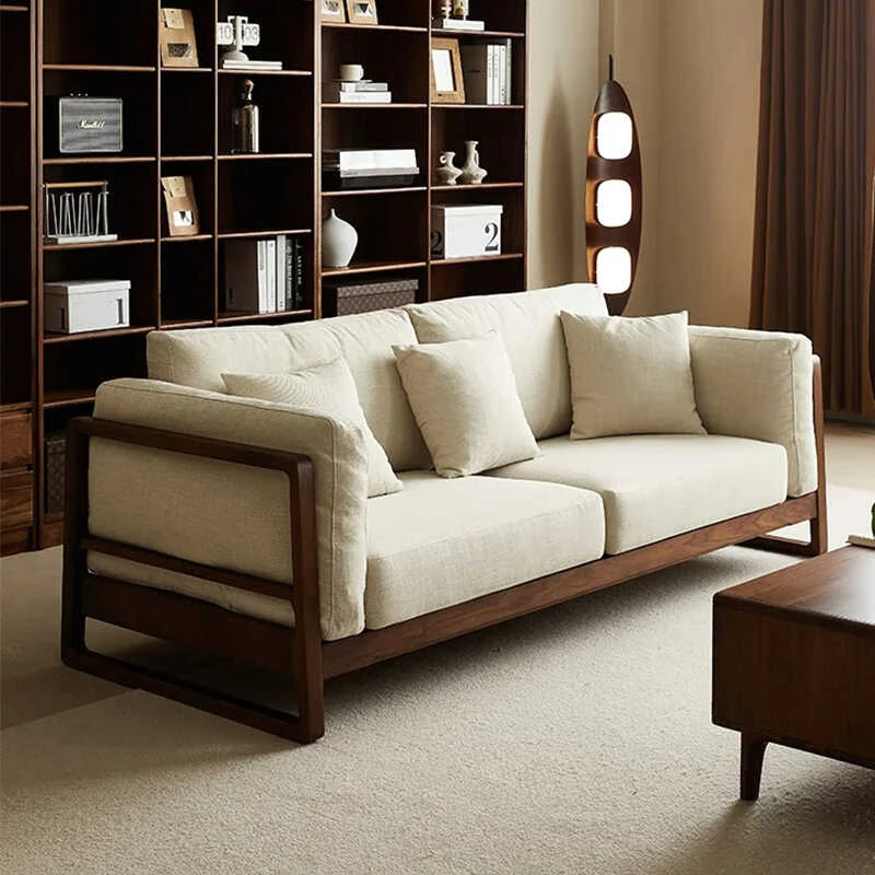 Modern Minimalist Zen-Style Solid Wood Sofa Set - North American Black Walnut Living Room Furniture for Villas