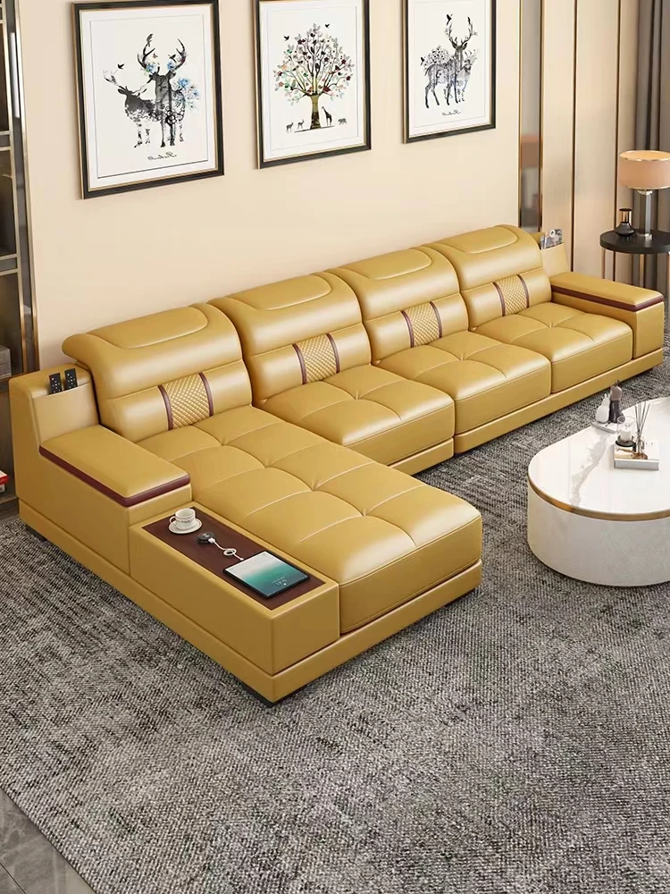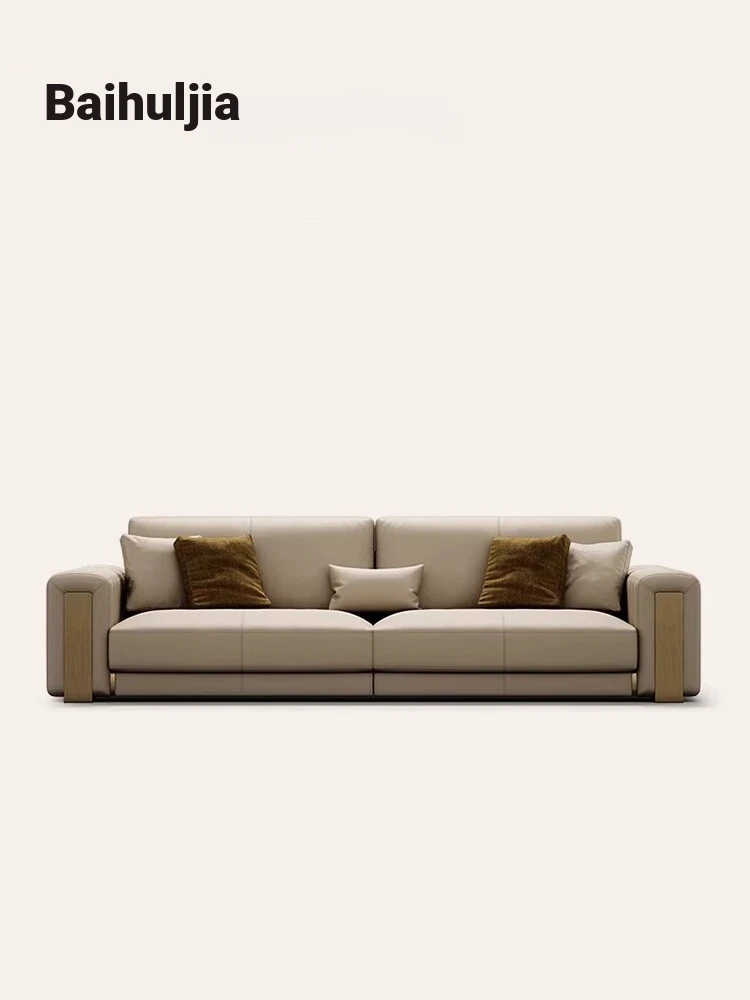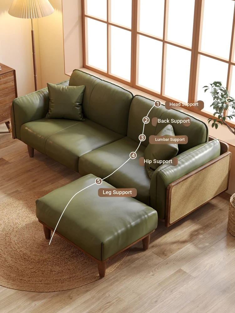 Modern Minimalist Solid Wood Corner Sofa Set - Genuine Leather with Top Grain Cowhide, Perfect for Small and Large Living Spaces, Easy to Assemble