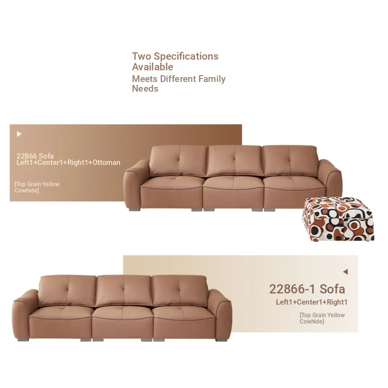 Quanfa Home 22866 Genuine Leather Sofa - Imported Top Layer Yellow Cowhide, Modern Straight-Line Design, Perfect for Stylish Living Spaces!