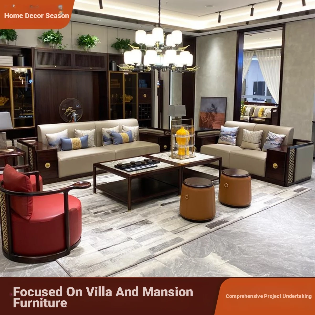 Modern Minimalist New Chinese Style Solid Wood Sofa Set - Elegant Multifunctional Living Room Furniture for Villas and Small Apartments