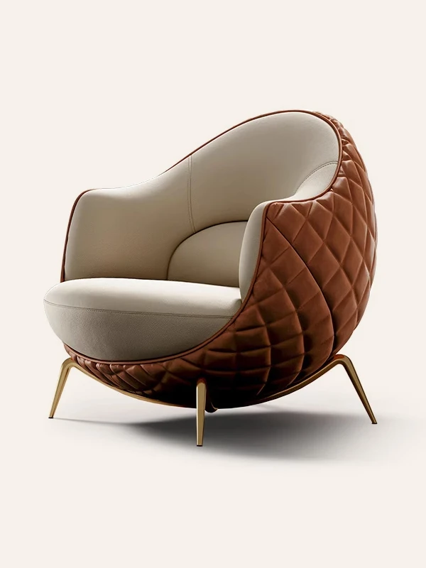 Designer Leather Single Sofa Egg Chair - Italian Light Luxury for Living Room and Balcony, Premium Reception Lounge Chair for High-End Hotels