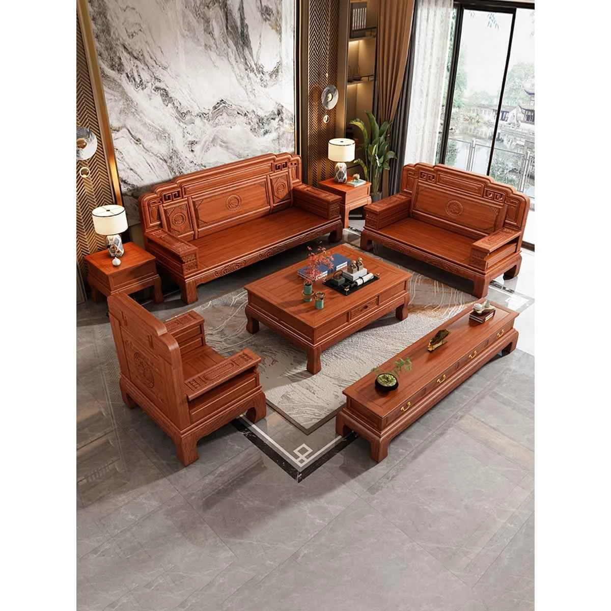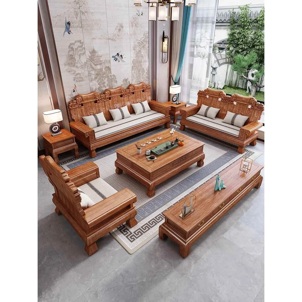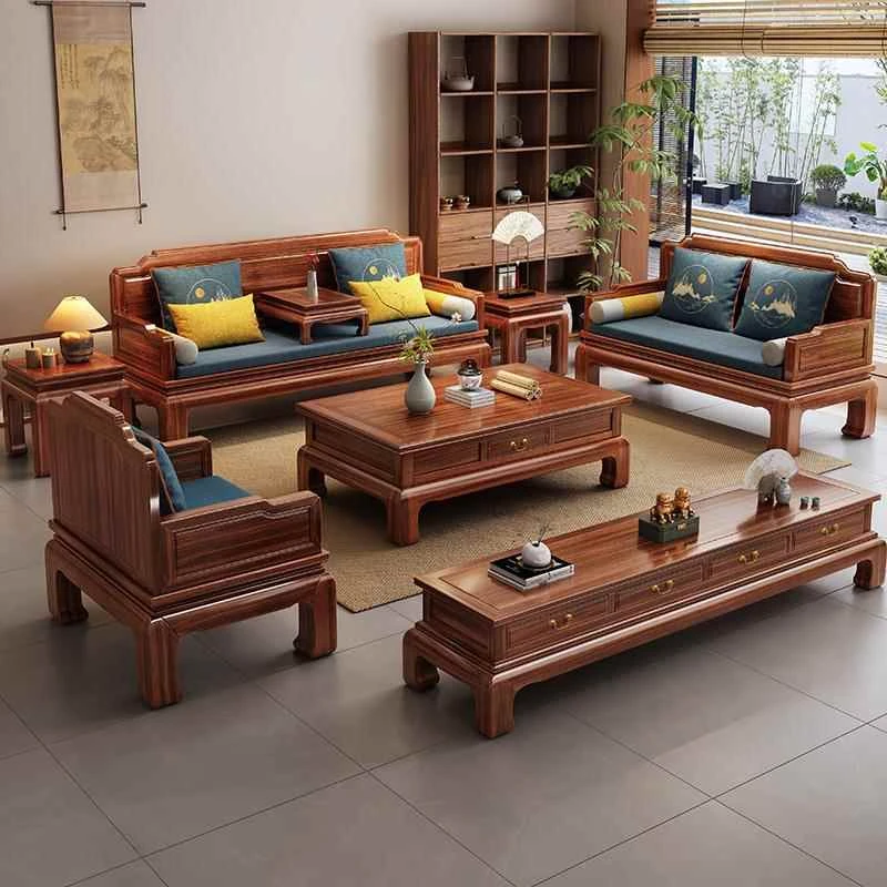 Luxury New Chinese Style Antique Rosewood Sofa Set - Versatile All-Season Solid Wood Living Room Furniture for High-End Villas