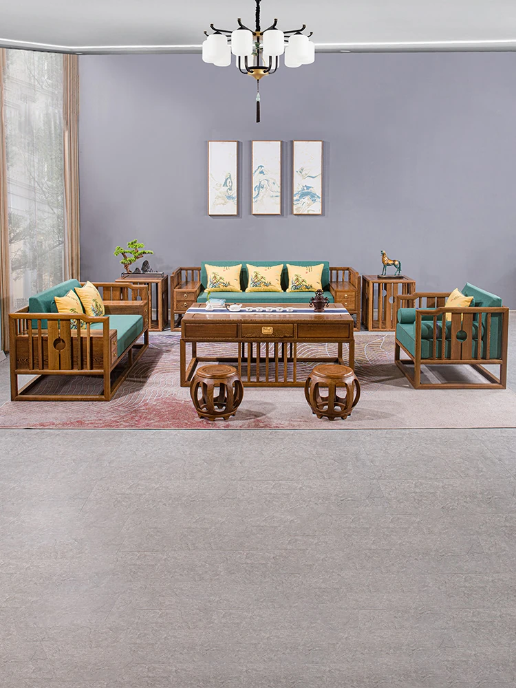 Modern Chinese Style Solid Wood Sofa Set - Minimalist Design for Spacious Villas and Large Living Rooms, Perfect for Chinese Zen Aesthetics in Clubs and Lounges.