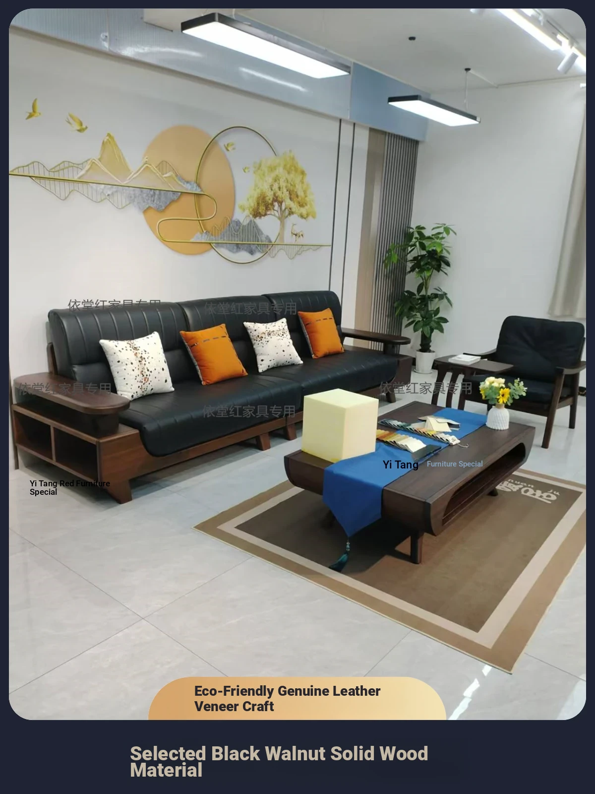 Modern Chinese Style 2025 Solid Wood Sofa in North American Black Walnut - Genuine Leather 3-Seat and 4-Seat Options for Your Living Room