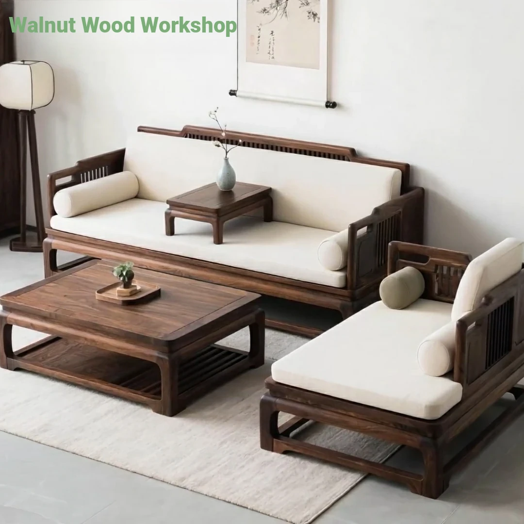 Fanglin's Song Dynasty Aesthetic Walnut Solid Wood Sofa Set – Elegant New Chinese Zen Style Furniture for Boutique Hotels and Villas, Perfect for Luxurious Living Rooms