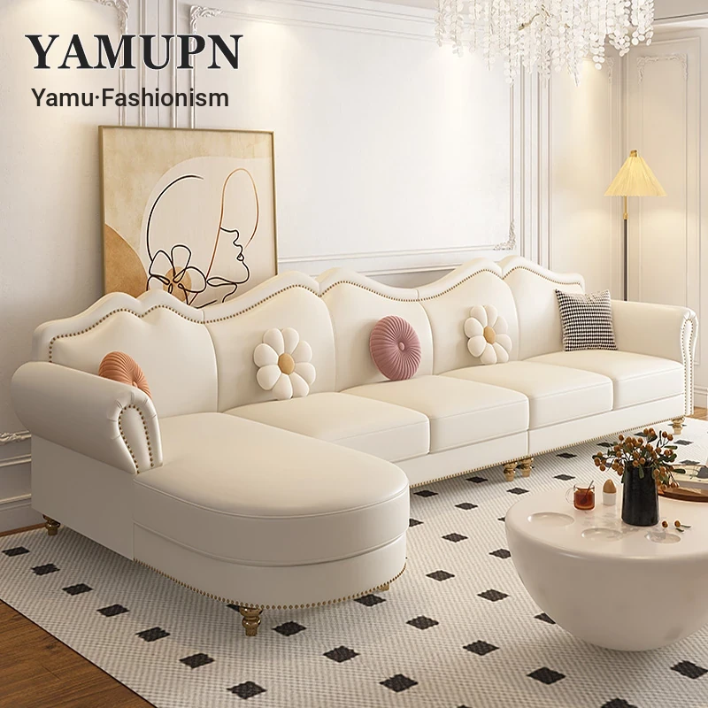 Luxury American Leather Sofa Set for Small Spaces - Stylish Corner Chaise Lounge with High-Quality Waxed Top-Grain Cowhide for Living Rooms, Seats Up to 4 People