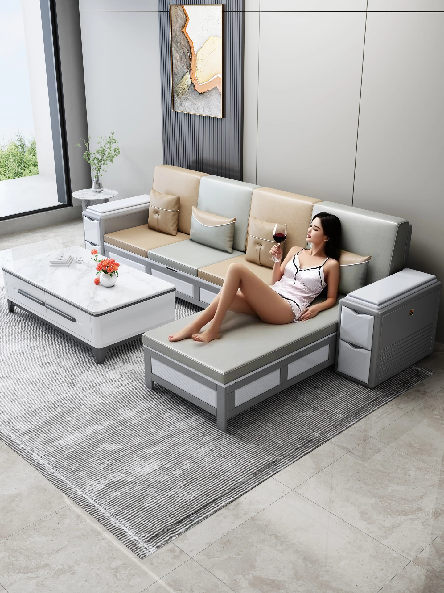 Luxury Italian Minimalist Electric Sofa Bed - Genuine Top Grain Leather, Versatile Design for Living Room, Wall-Free Configuration, Perfect for Modern Spaces