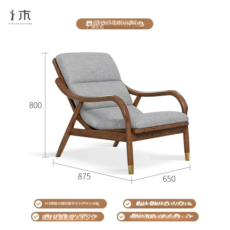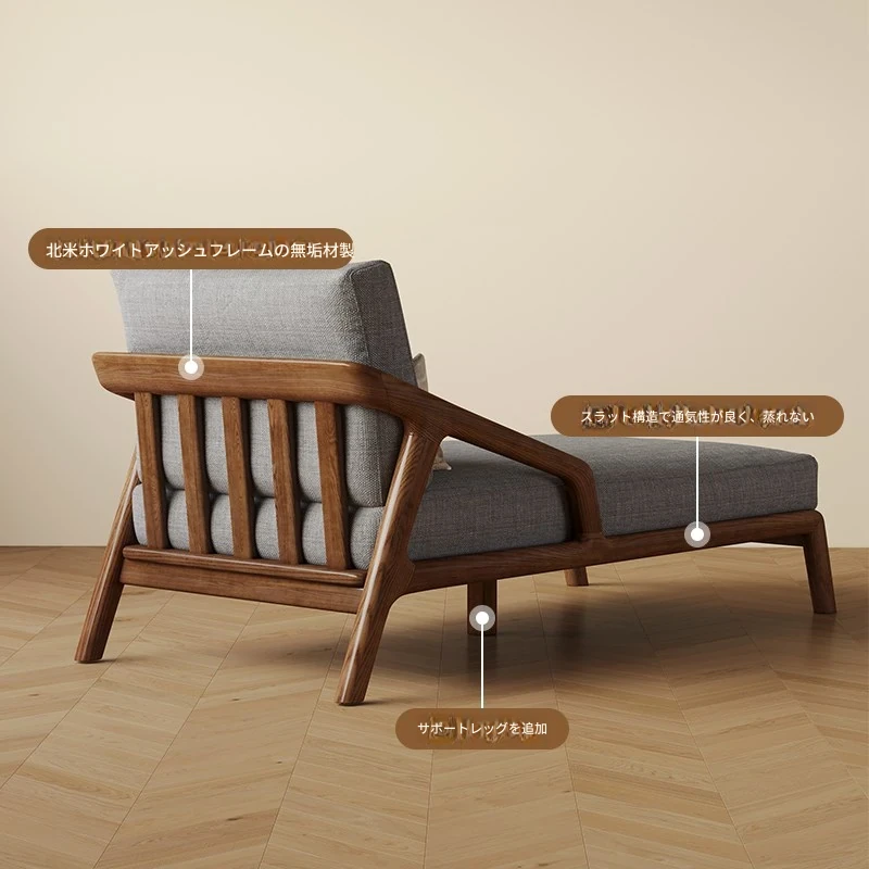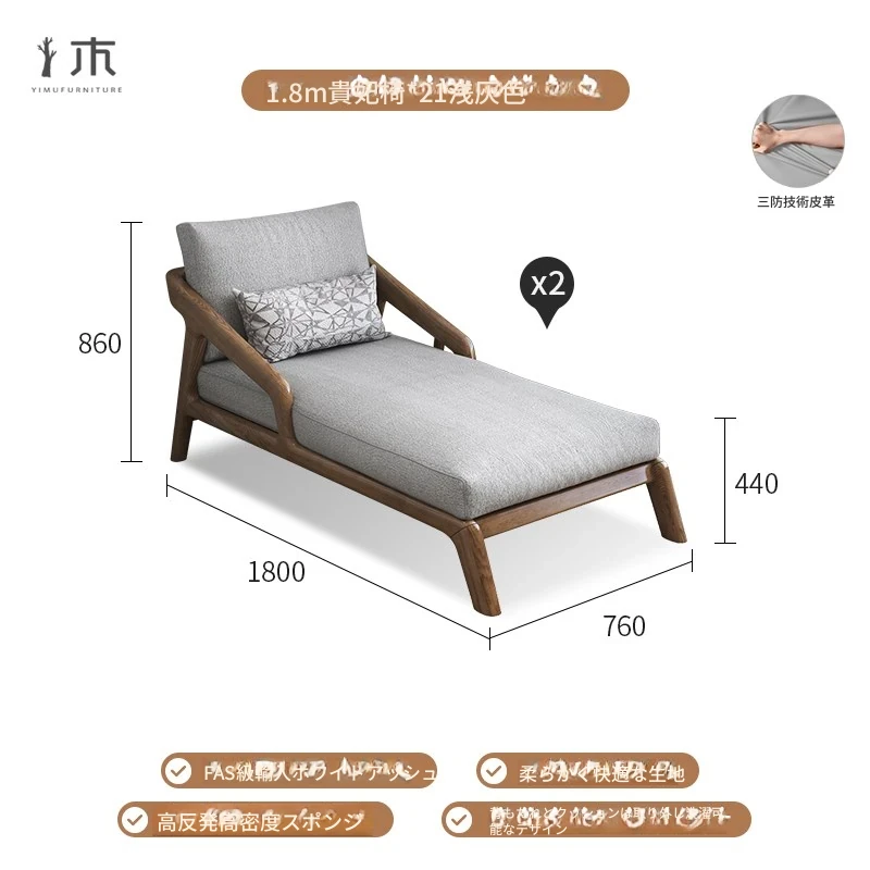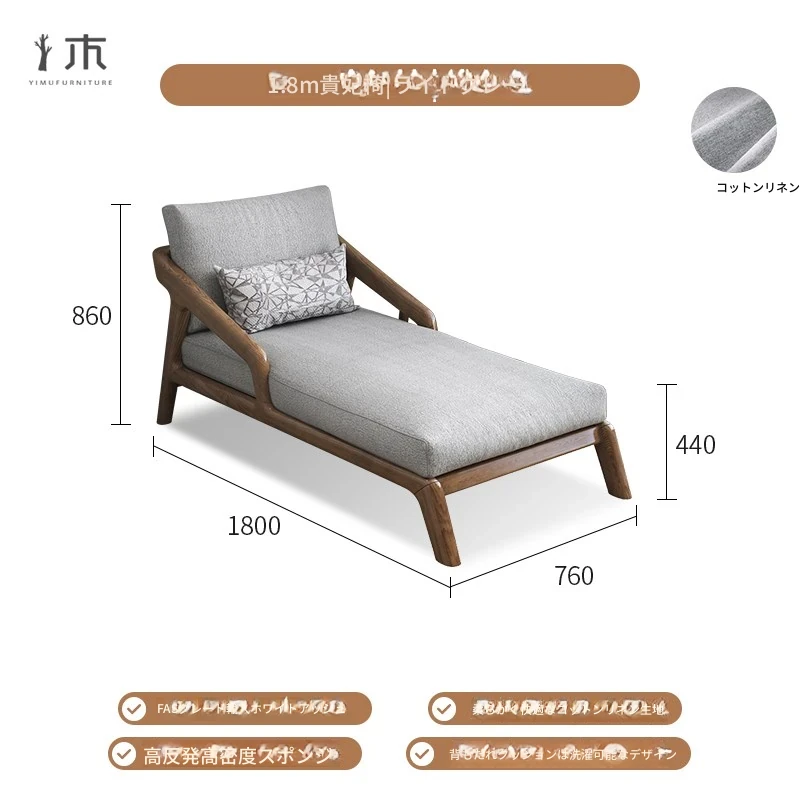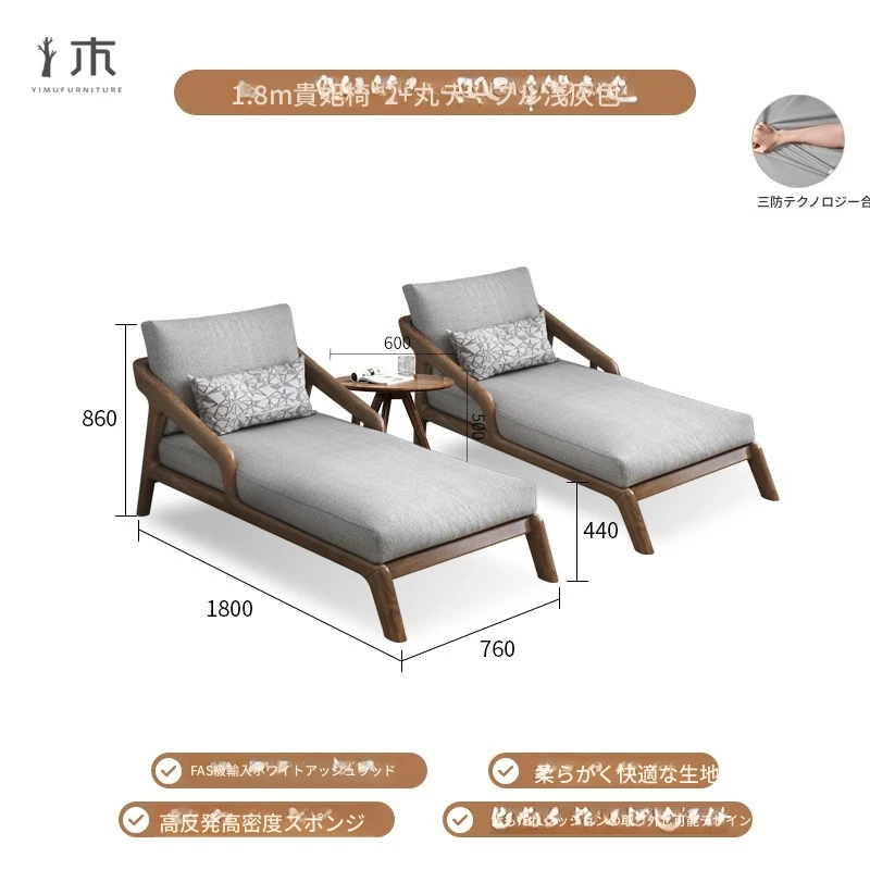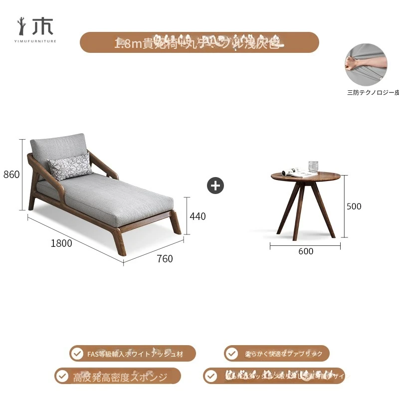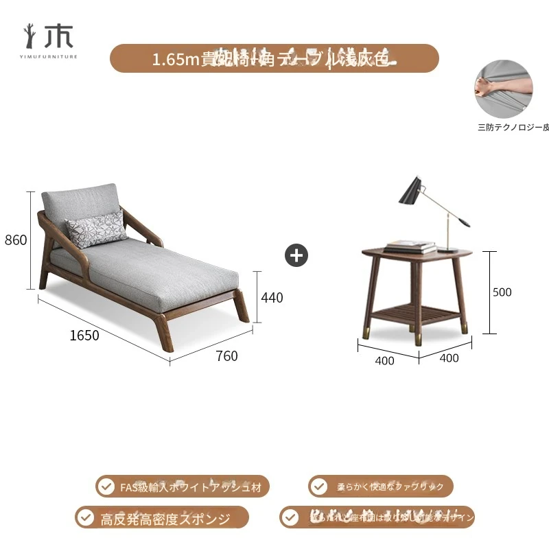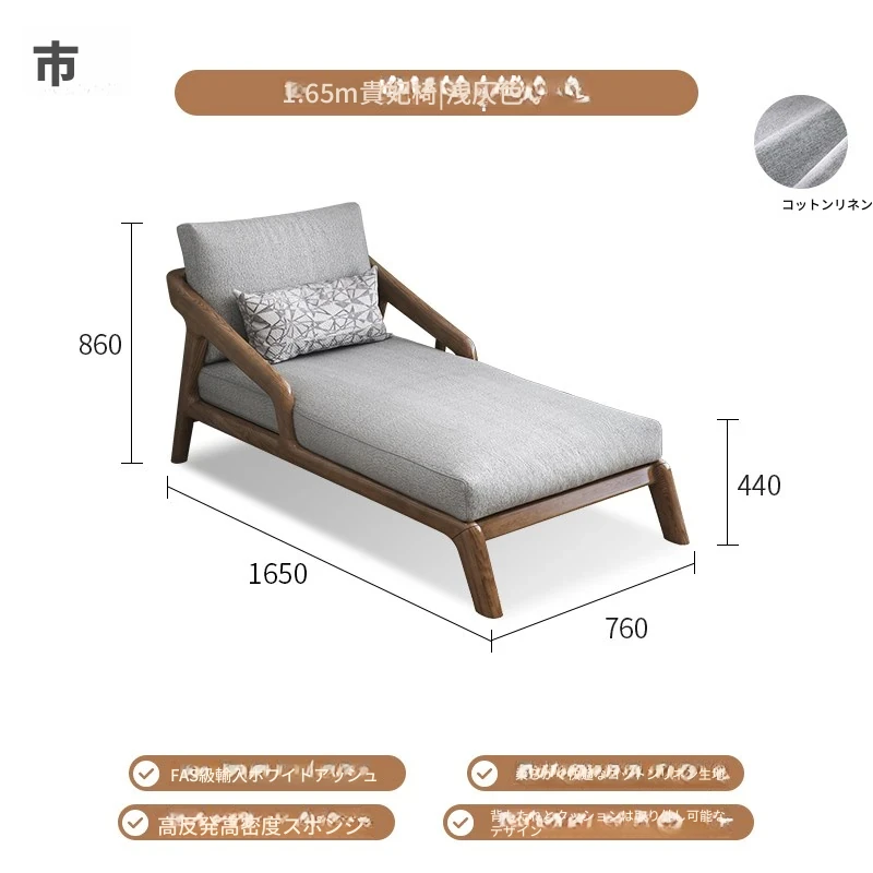 全木製のモダンな貴妃椅子 - テクノロジー布使用の一人掛けソファ、新中式デザインのN型ソファベッド。リラックスできるバルコニー用の完璧なアイテム!