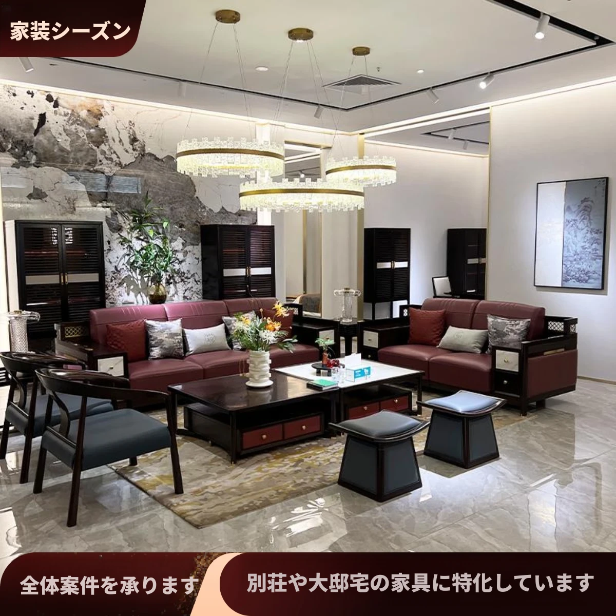 新中式デザイン完全実現!高級本革ソファ、無垢材使用のモダンラグジュアリーセット。リビングに最適な1+2+3の構成で、洗練された空間を演出します。