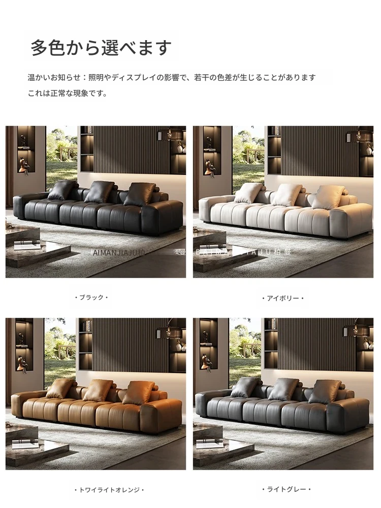 本革製イタリアンミニマリズムソファ|高級フラットルーム向け|本牛革使用|ピアノキー風デザイン|洗練されたリビング空間に最適!