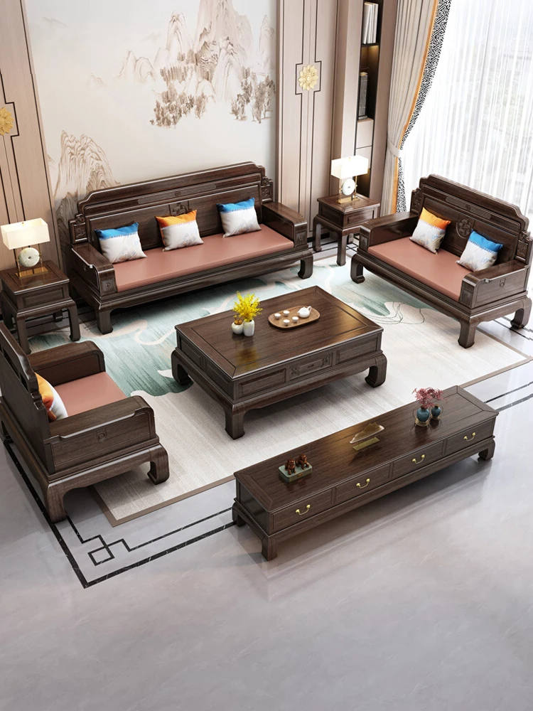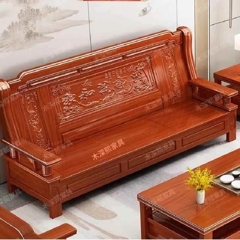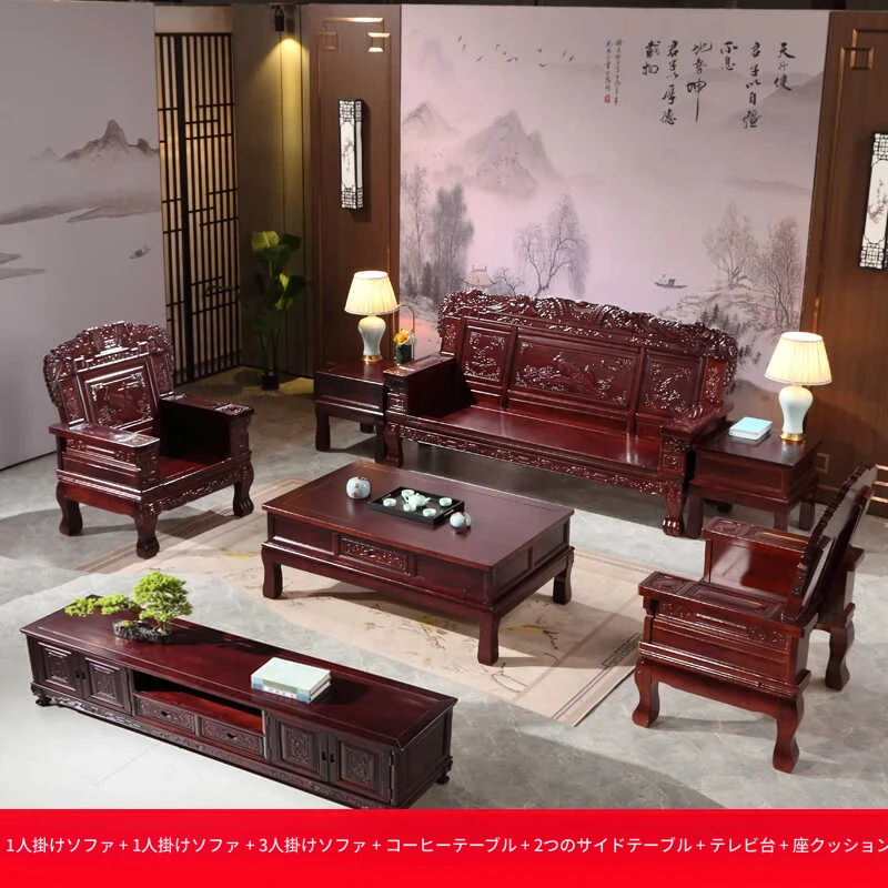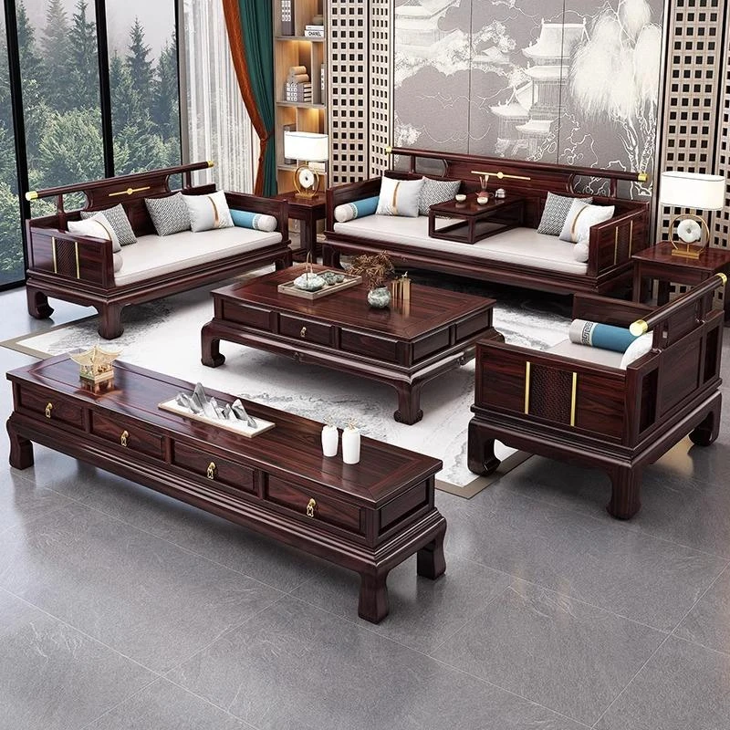 ウッディブラックウッド無垢ソファ 新中式スタイル リビングルーム用 別荘や大小の部屋に最適 冬夏兼用 高級感あふれるアンティーク調紅木家具