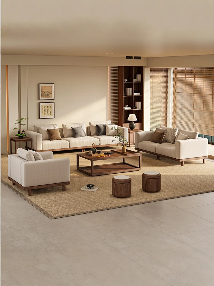 心木坊の黒くるみ無垢材ソファ - 新中式の現代的でシンプルなデザイン、2025年新作!冬夏両用で快適なリビング空間を演出します。