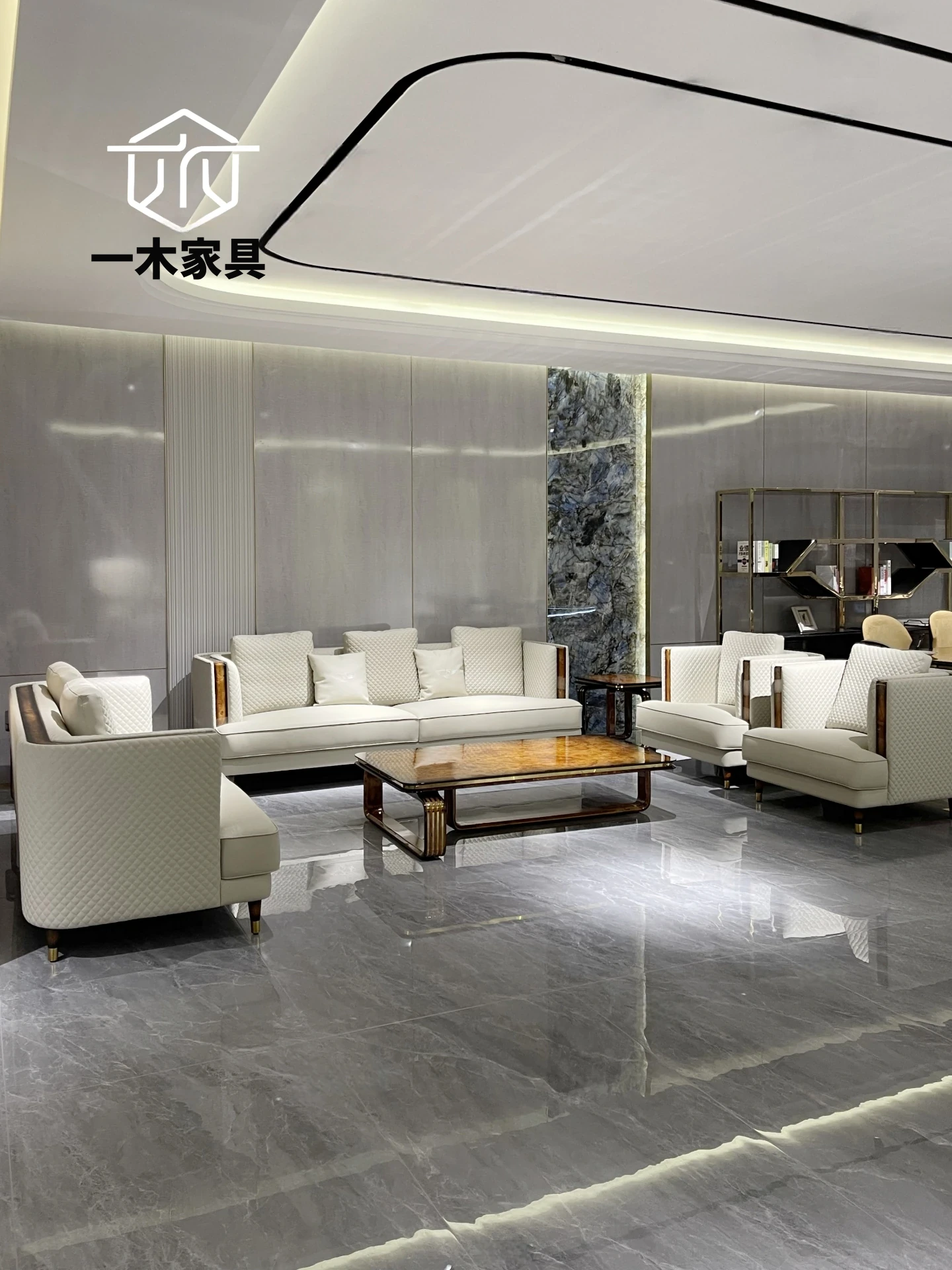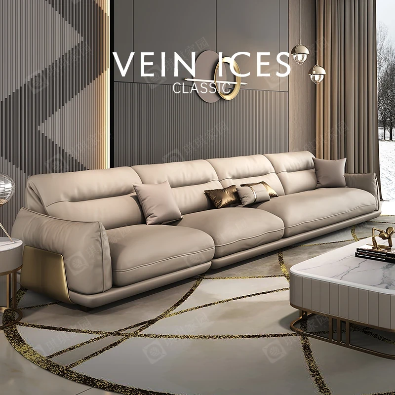 高級ヴィラ向けのラグジュアリーなレザーソファ|現代的でシンプルなデザイン、広々としたリビングに最適な3人掛けレザーソファのコンビネーション。快適さとスタイルを両立した一品!