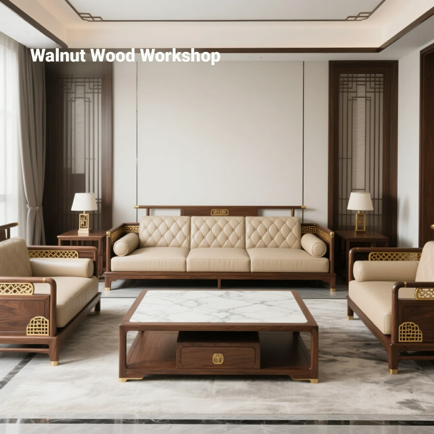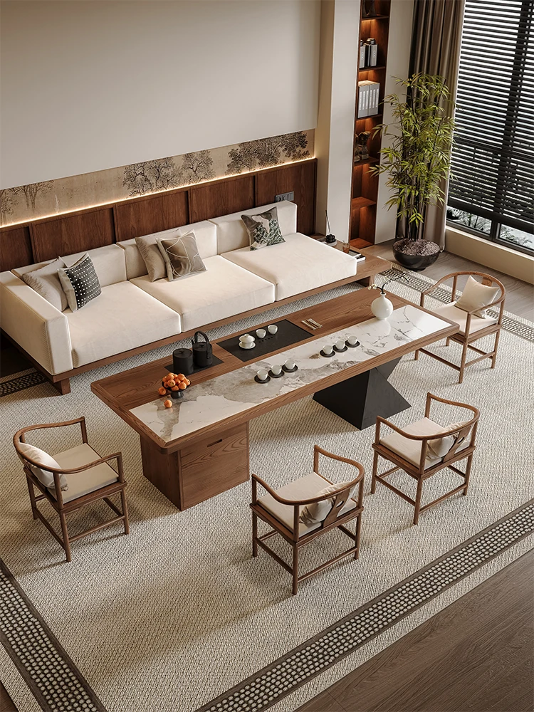 Elegant New Chinese Style Walnut Solid Wood Sofa Set - Modern Minimalist Zen Furniture for Villas, Inspired by Song Dynasty Aesthetics. Perfect for Upscale Living Rooms.