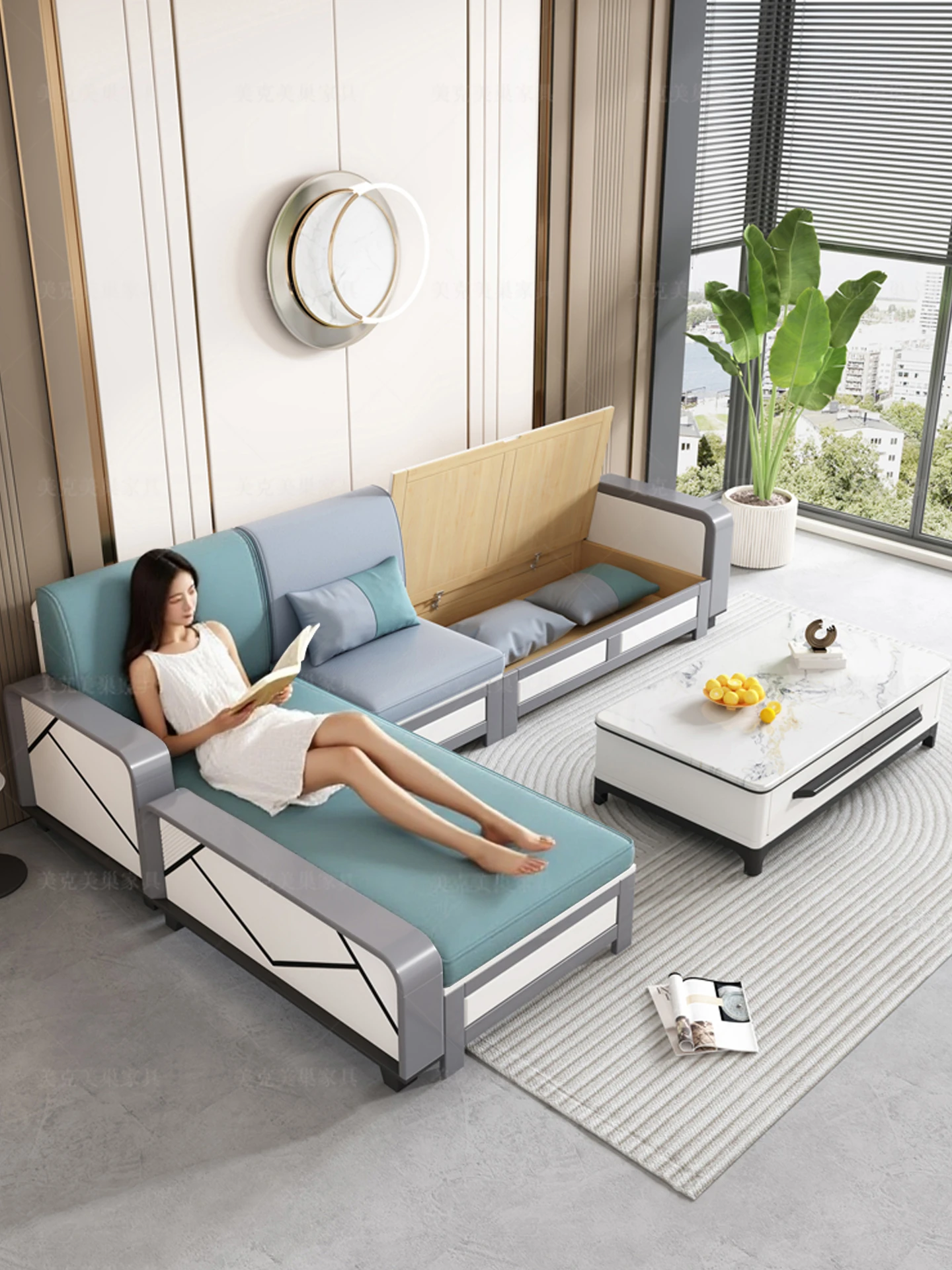 Modern Minimalist All-Wood Sofa for Living Room - Versatile 3-Seater Corner Couch with Storage, Ideal for Small Spaces, Perfect for Year-Round Comfort in Winter and Summer
