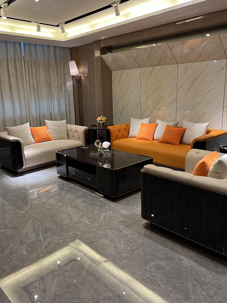 Italian Luxury Genuine Leather Sofa Set - Modern High-End Design for Villas and Spacious Apartments - Stylish New Waistline Sofa for Your Living Room