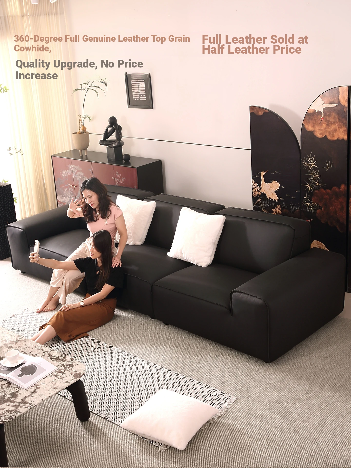Premium Genuine Leather Sofa - Modern Minimalist Scandinavian Design for Living Rooms, Versatile Corner Sectional for All Spaces, Featuring Luxurious Down-Filled Comfort
