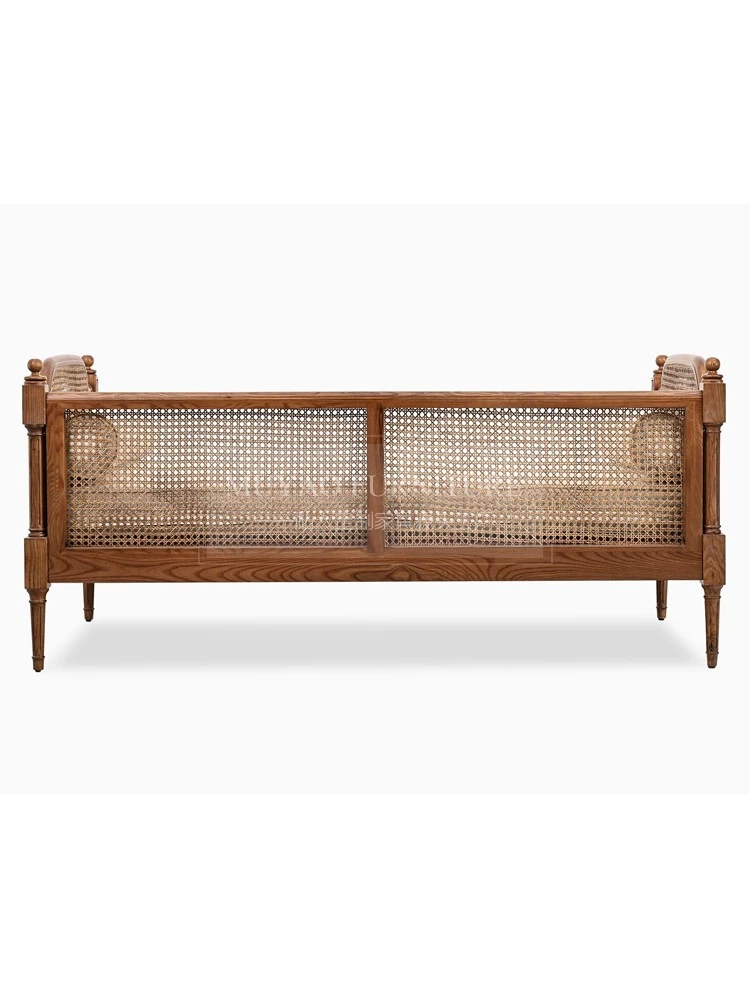 French Rattan-Woven Solid Wood Sofa - Vintage American Style, 1-3 Seater, Removable and Washable, Perfect for Your Living Room Furniture Collection