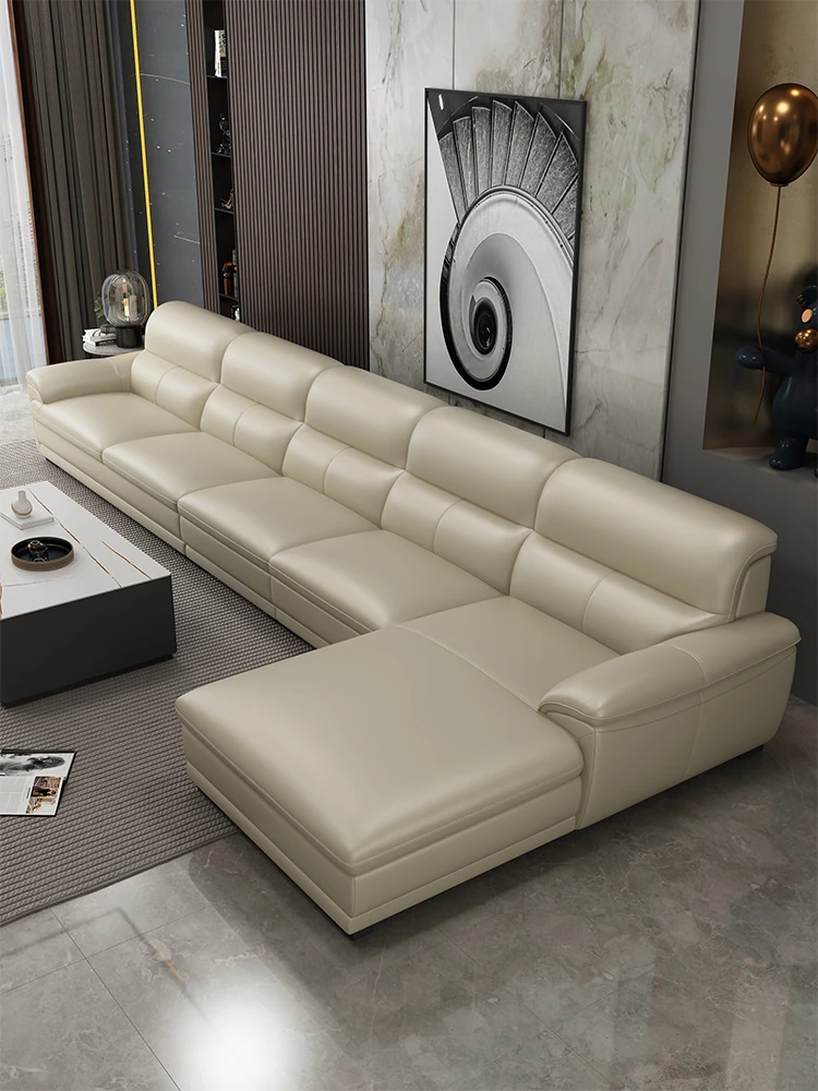 Modern Solid Wood Corner Combination Sofa - Luxurious Genuine Leather Couch for Living Rooms of All Sizes, Featuring Top-Grade Cowhide and Chic Design for an Elegant Touch