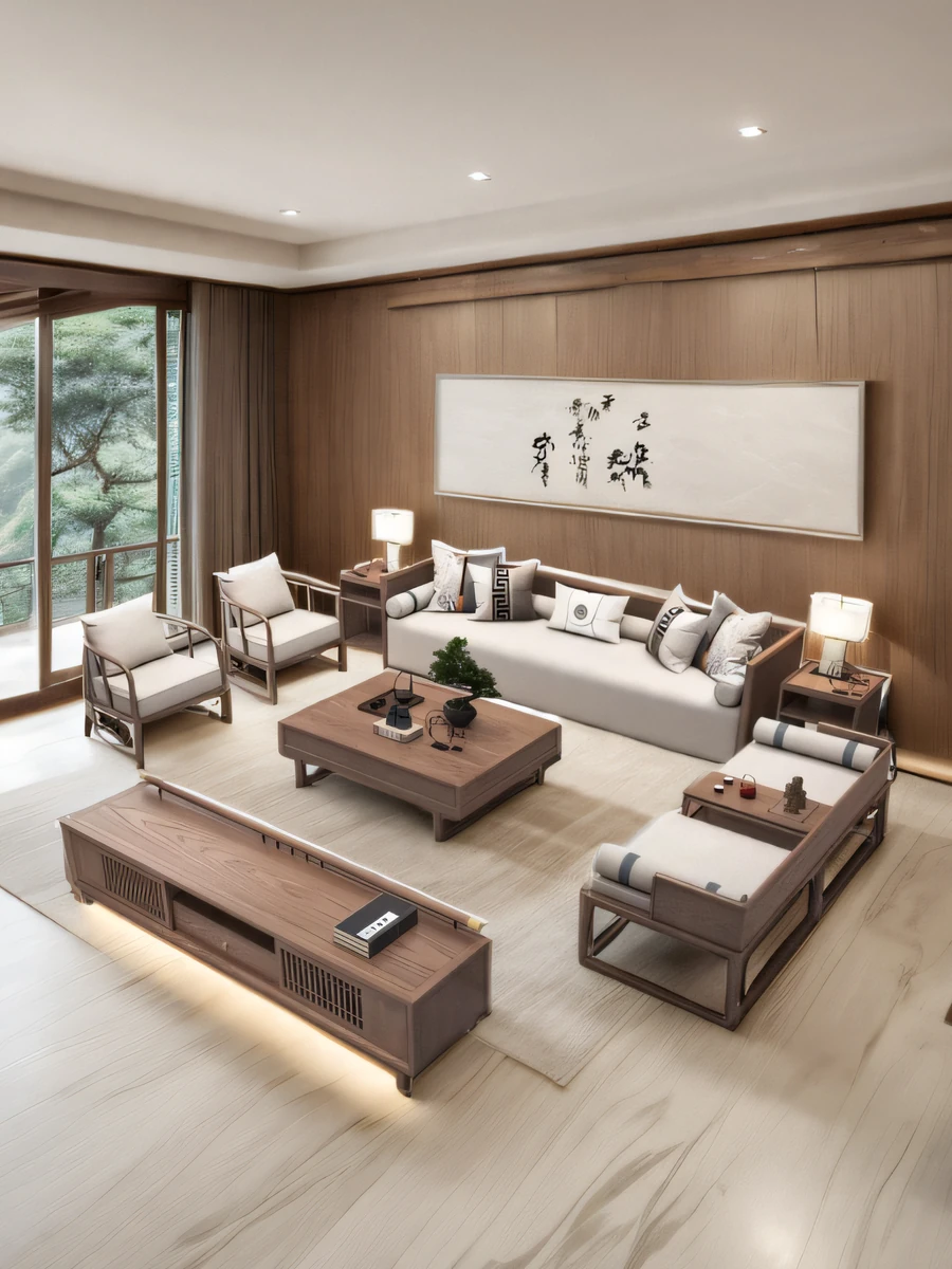 新中式スタイルの高級無垢材ソファセット - モダンで洗練されたデザイン、ウッディな質感が魅力。ホテルやサロン、オフィスにも最適な高級家具です。あなたのリビングを特別な空間に演出します。
