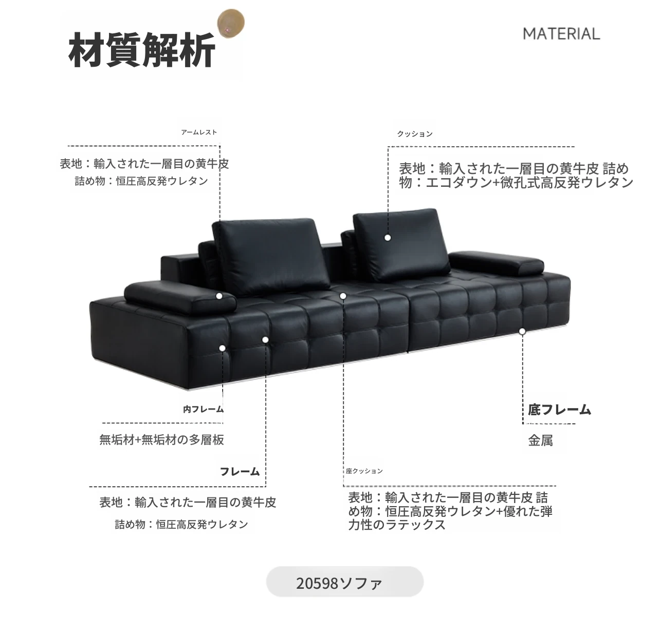 全友家具20598本革ソファー 高級イタリアンレザー使用 シンプルで洗練されたデザイン ローレンススタイルの直線的な一体型ソファ