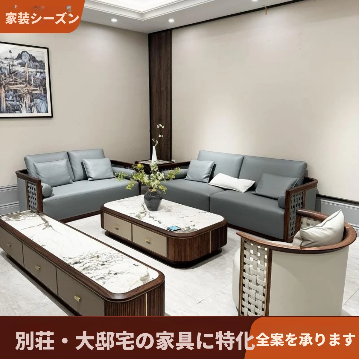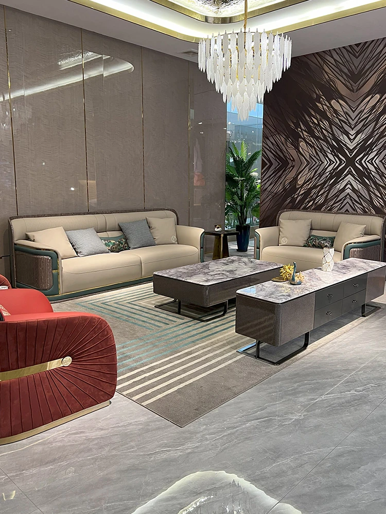 本革使用!イタリアンスタイルの高級モジュールソファ - ヴィラ用の豪華なリビングルームにぴったり!2025年新作、プレミアム牛革を使用した贅沢な直排デザイン。あなたの空間を特別に演出します!