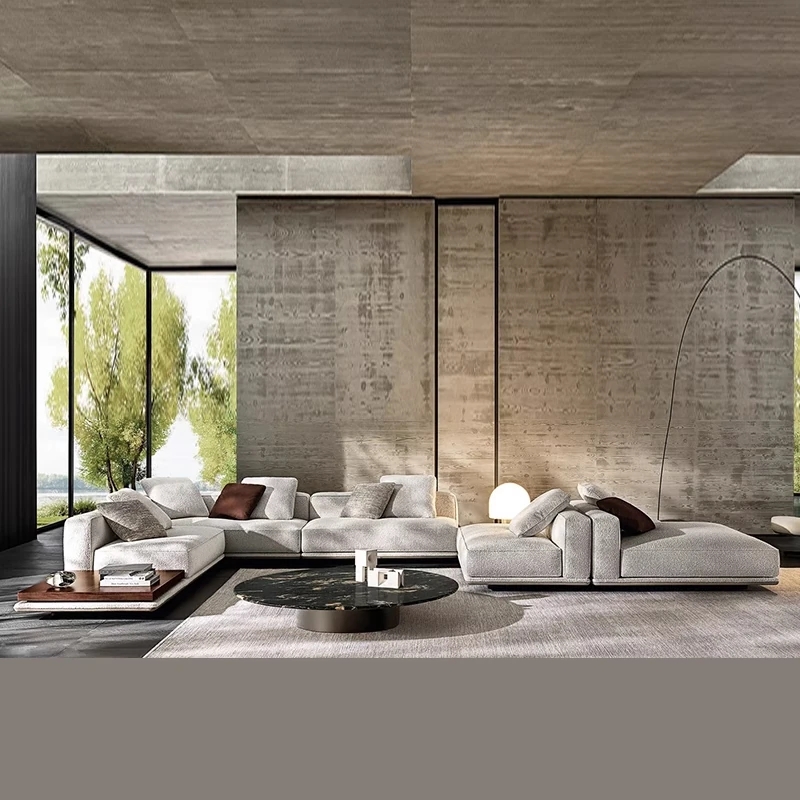 イタリアンラグジュアリー本革ソファ|自宅新築に最適なモダンシンプル家具|2025年新作|広々としたリビングにぴったりの大空間向けソファ
