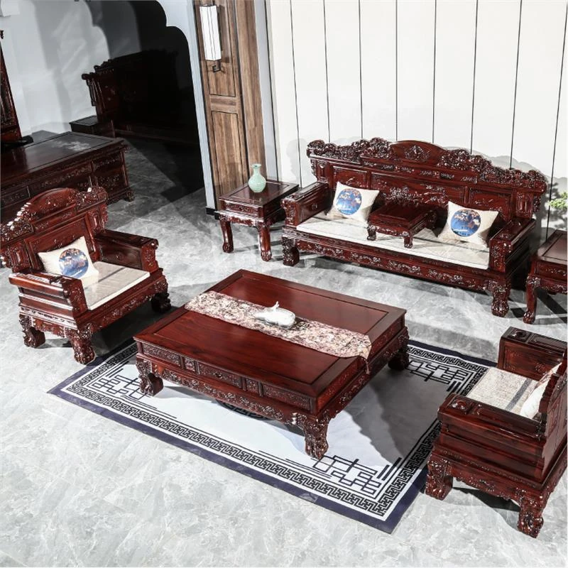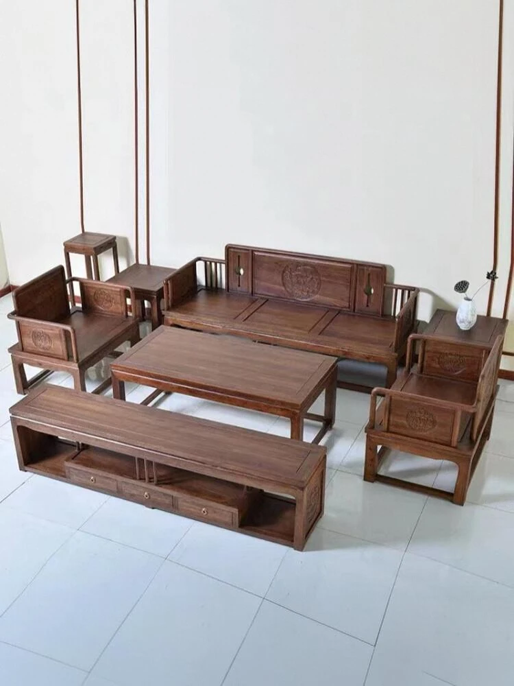 インドネシア産ブラックローズウッドの広葉黄檀を使用した現代中式リビングルーム用の無垢材家具、工場直販!高級感溢れるデザインで、あなたの空間を格上げします。